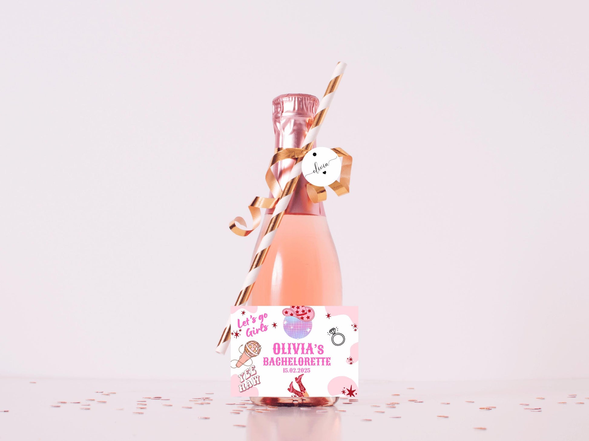 Bachelorette Party Mini Prosecco Wine Bottle Label/ Last Rodeo Personalised Bridal Shower/Let's Go Girls Nashville/Nash Bash Country Sticker