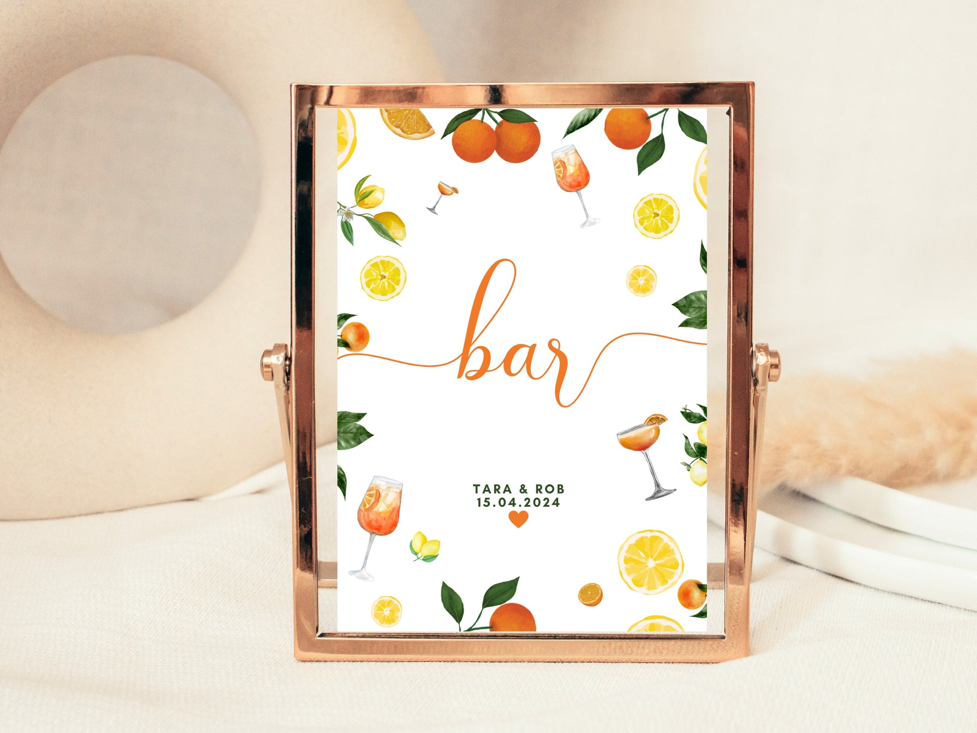 Bar Sign/ Citrus Alcohol Prosecco Champagne Drinks Spring Summer Lemons Oranges Mediterranean Theme/ Italian Style Hen Party Bridal Shower.