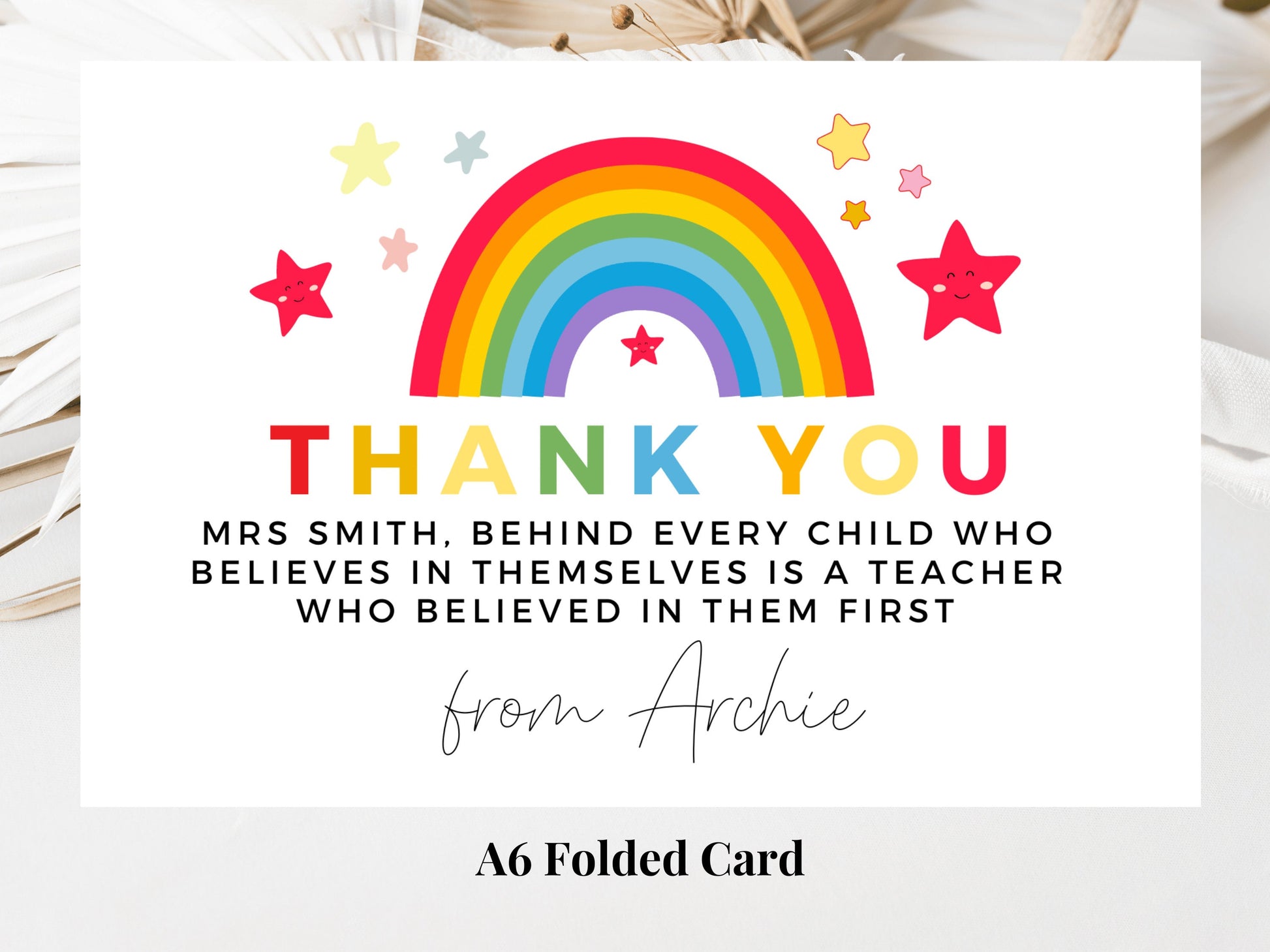 Behind Every Child Who Believes in Them First Theres a Teacher Who Believed in Them First Card/ Personalised Pastel Rainbow Star Teacher.