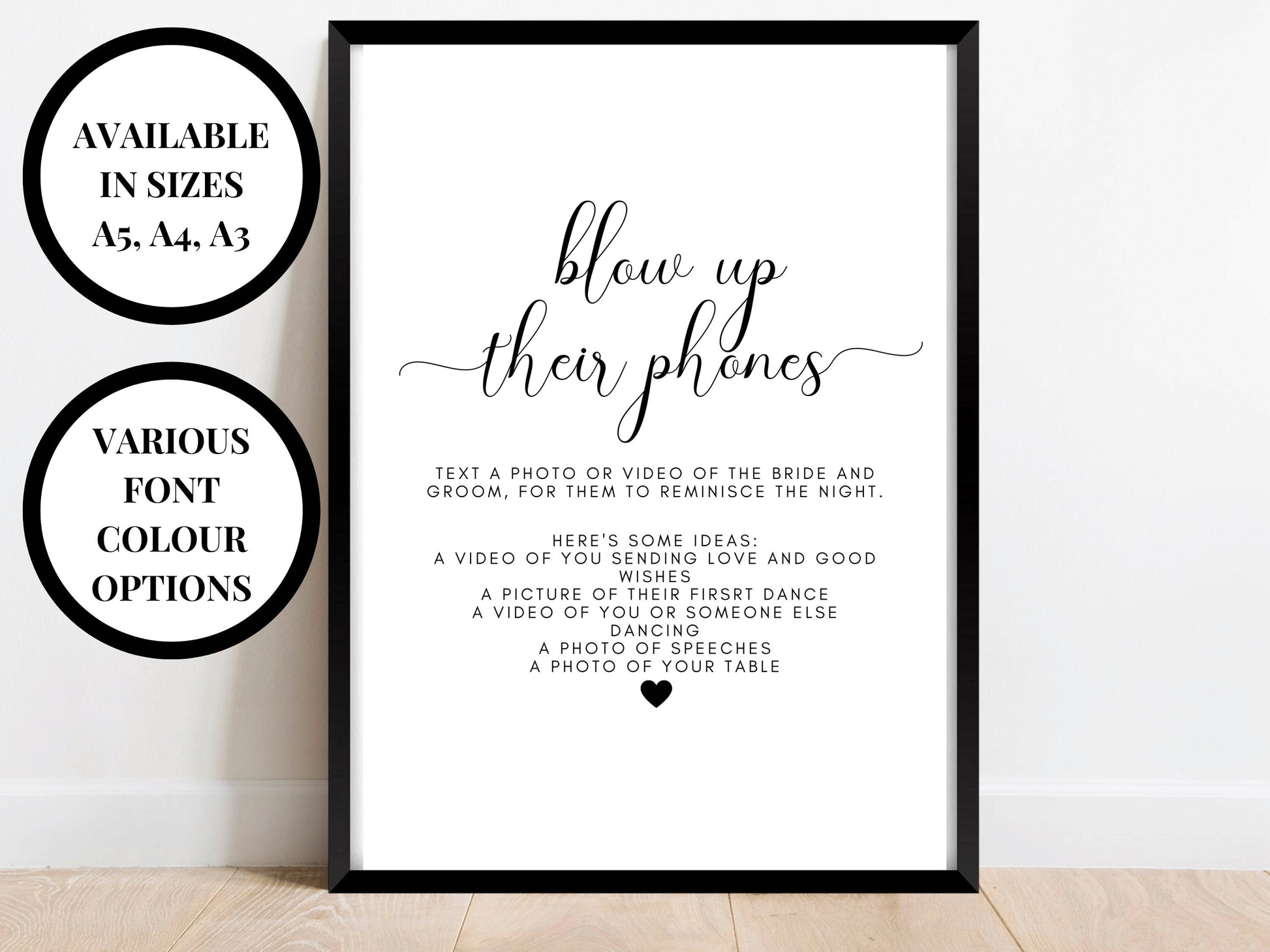 Blow Up Their Phones Sign/ 24 Text Colour Options/ Match Your Party Scheme/ Text a Photo of the Bride and Groom to Remember the Night.