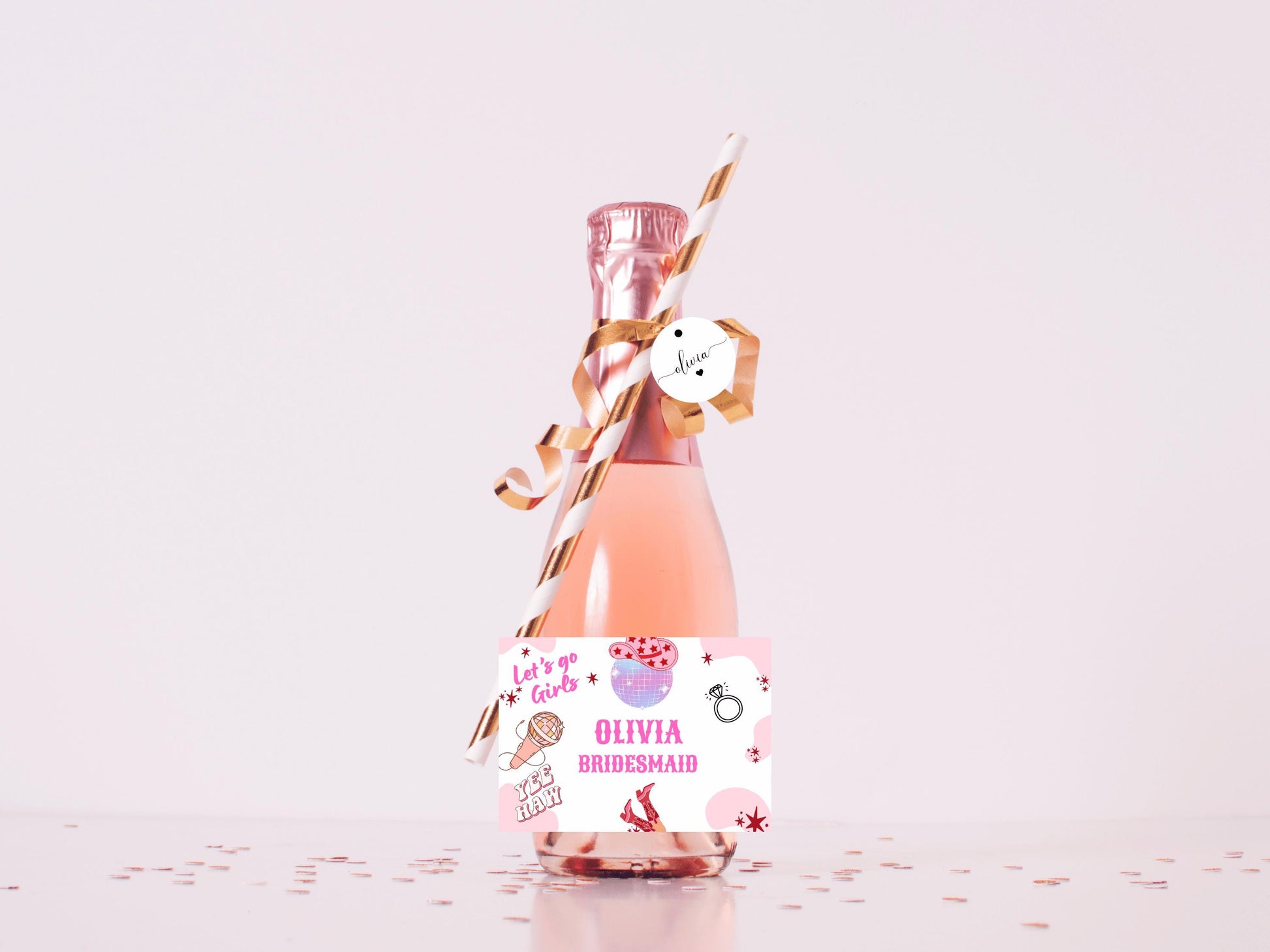 Bridesmaid Hen Party Mini Prosecco Bottle Label/ Last Rodeo Personalised Bridal Shower/ Let's Go Girls Nashville/ Nash Bash Country Decor.