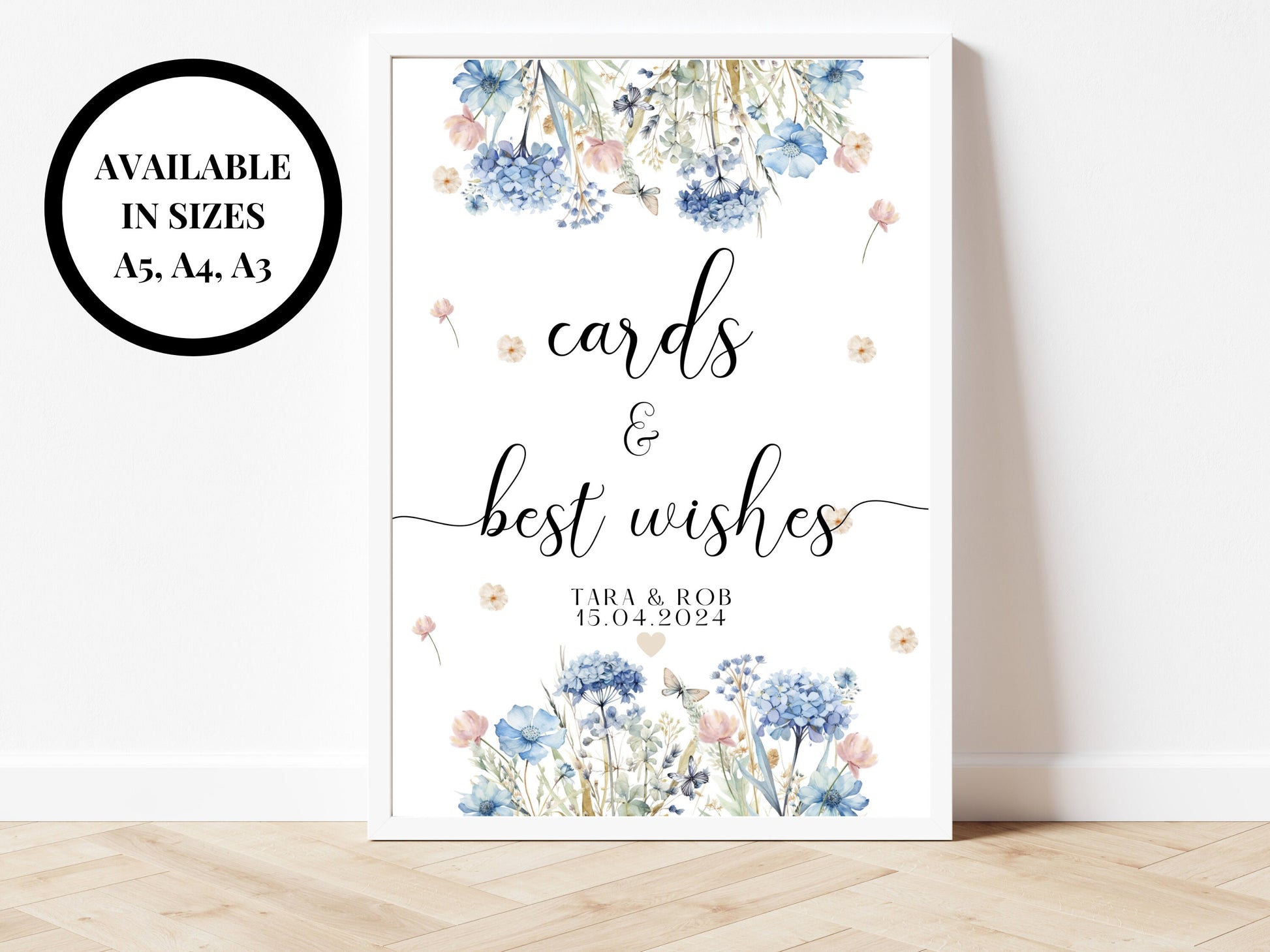 Cards and Best Wishes Sign/ Blue Theme Wedding Reception Please Leave Your Gifts Here Poster/ Wedding Presents/ Card Box Sign.