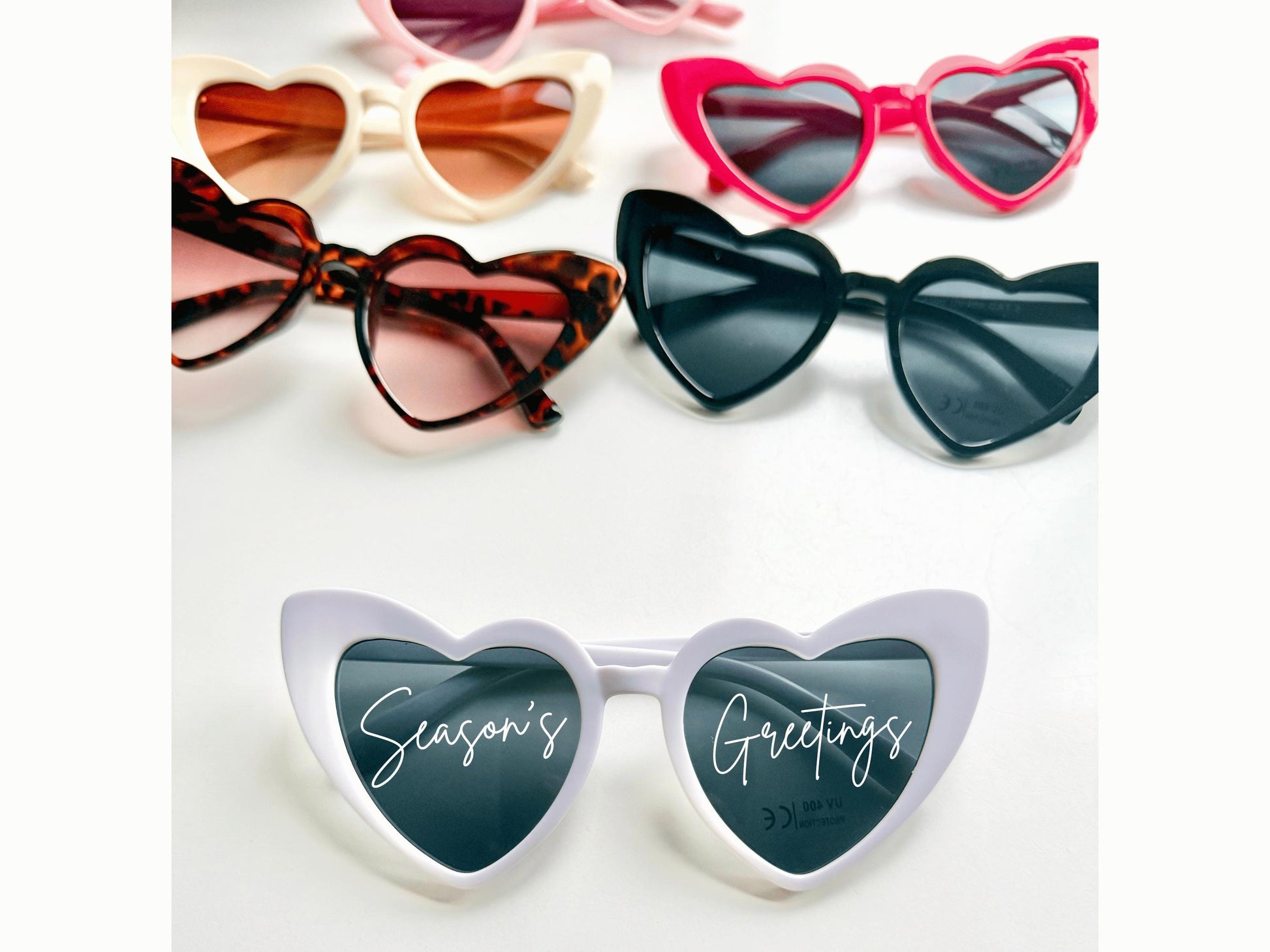 Custom Seasons Greetings Heart Shaped Sunglasses/ Happy Christmas Stocking Filler Present/ Merry Christmas Gift for Her/ Favours Souvenirs