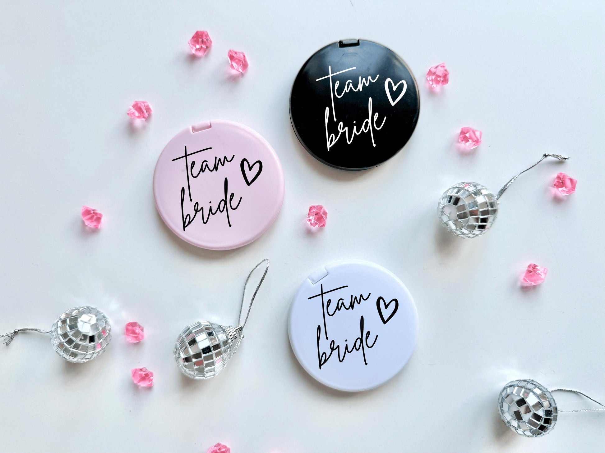Custom Team Bride Compact Mirror/ Pocket Mirror for Handbag/ Travel Cosmetics Mirror/ Gift for Women Pocket Mirror for Her/ Girlfriend/ Wife