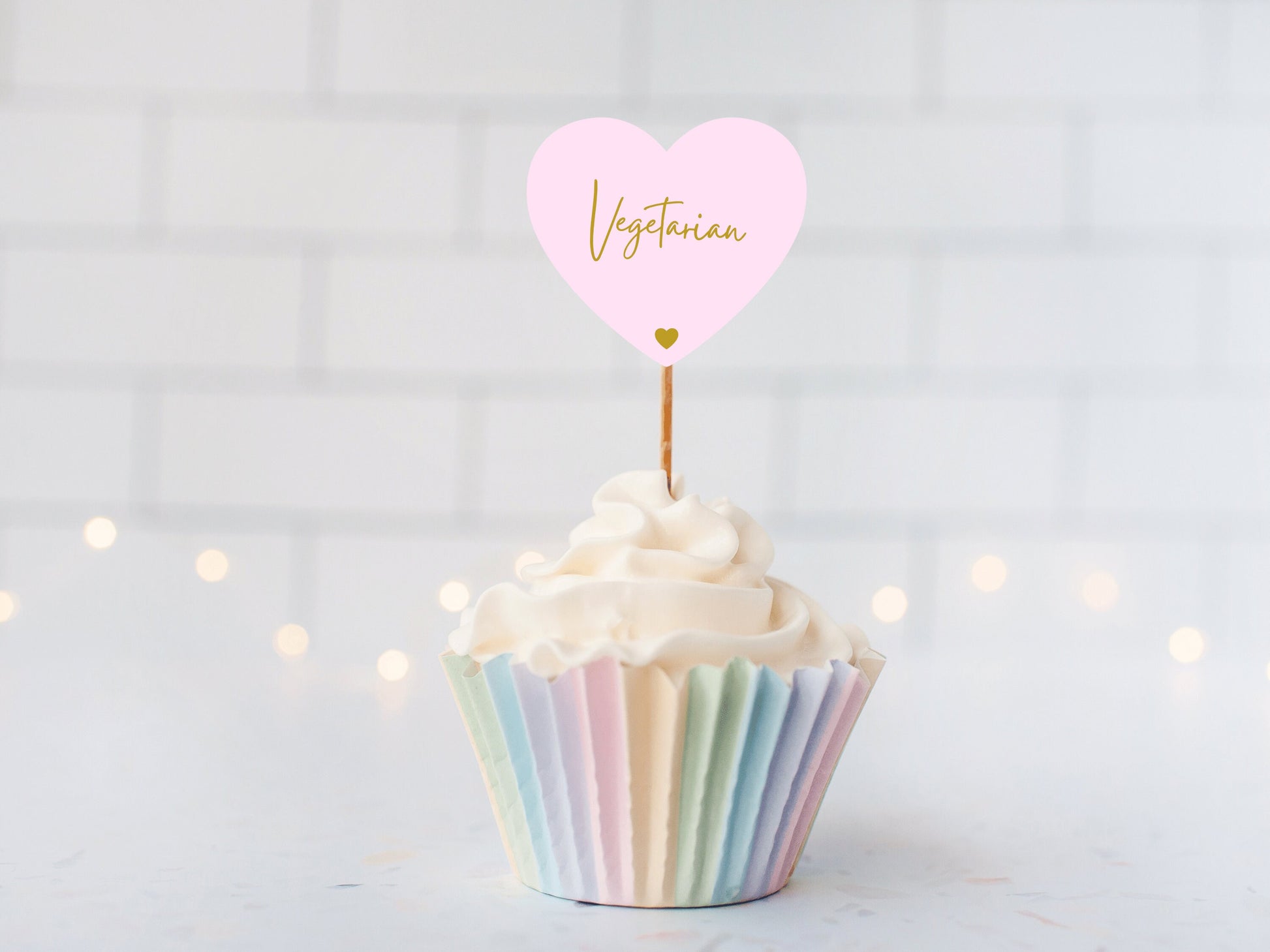 Custom Vegetarian Party Cupcake Topper Food Labels/ Vegetarian Pastel Food Tags Topper/ Cute Party Food Allergy Label/ Custom Topper
