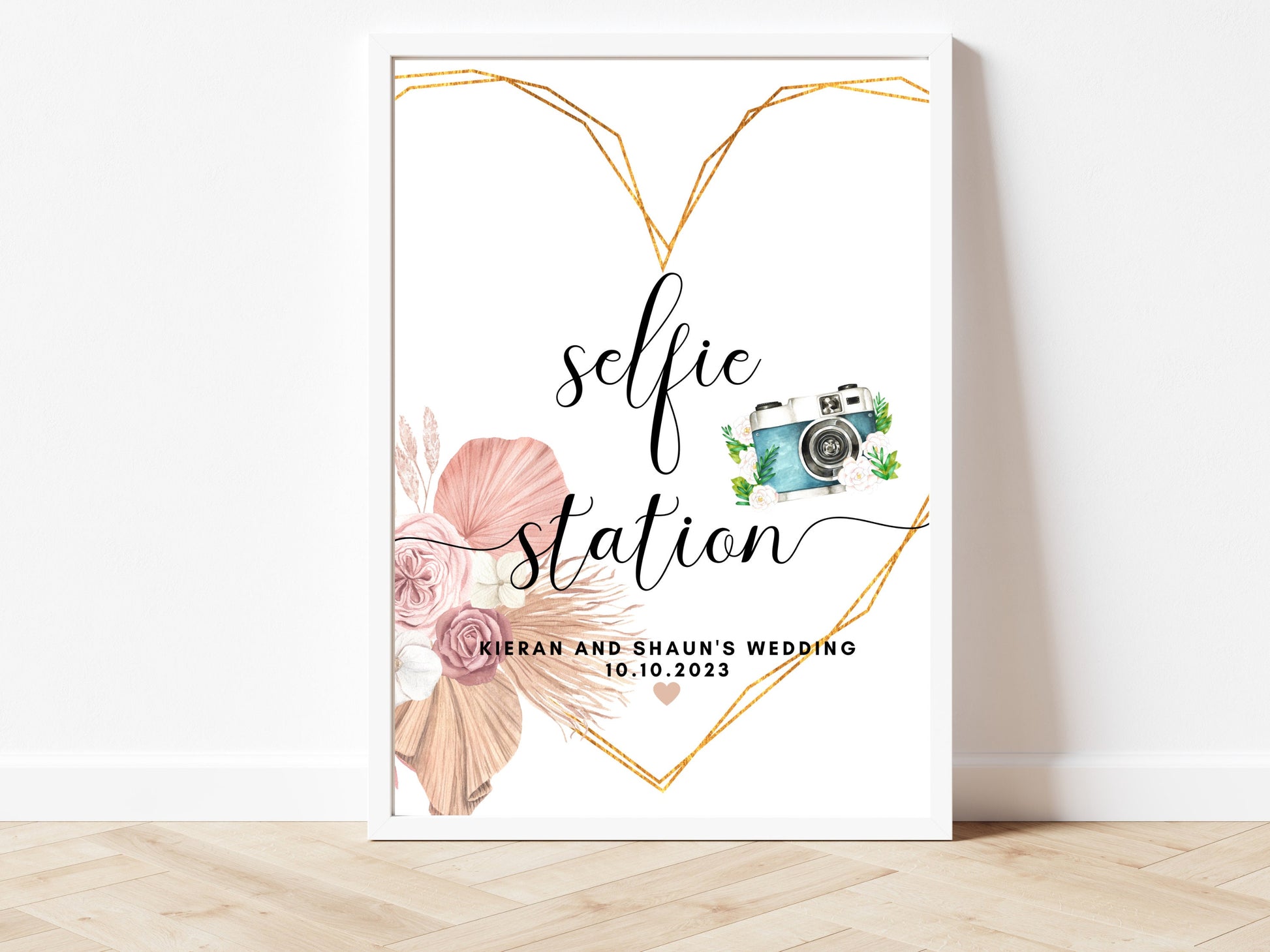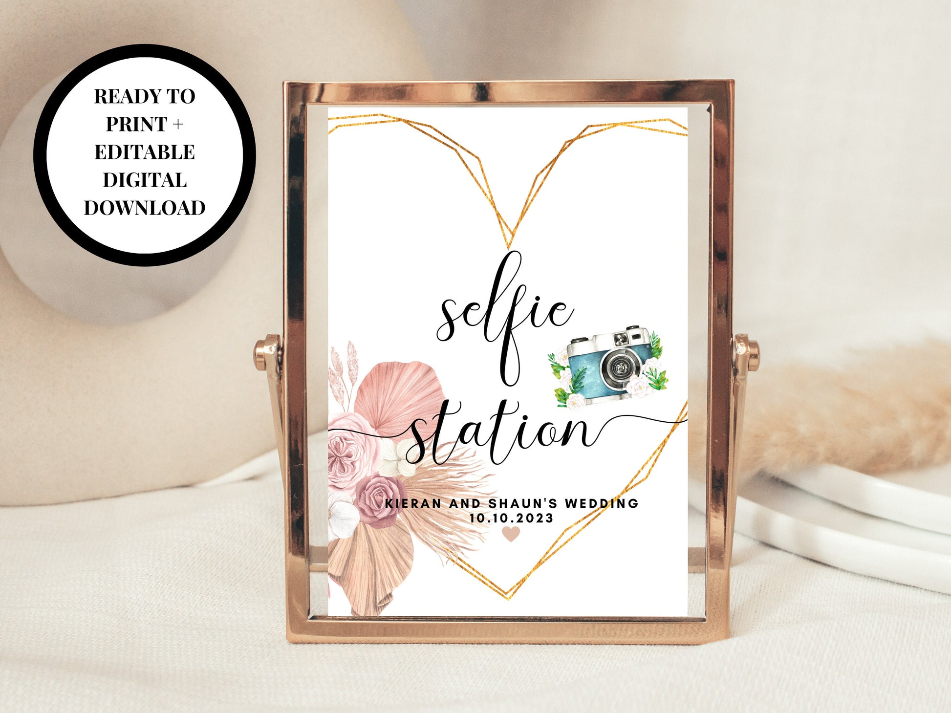Editable Selfie Station Printable Sign/ Pampas Grass Floral Wedding Reception Photo Booth Poster/ Hen Party/ Bridal Shower Photo Sign.