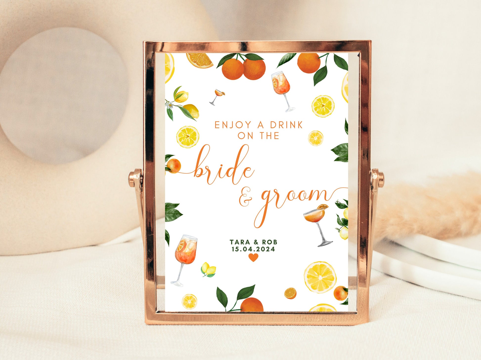 Enjoy and Drink on the Bride and Groom Sign/ Open Bar/ Enjoy Drinks are Free/ Alcohol Bar Prosecco Drinks Mediterranean/ Italian Style