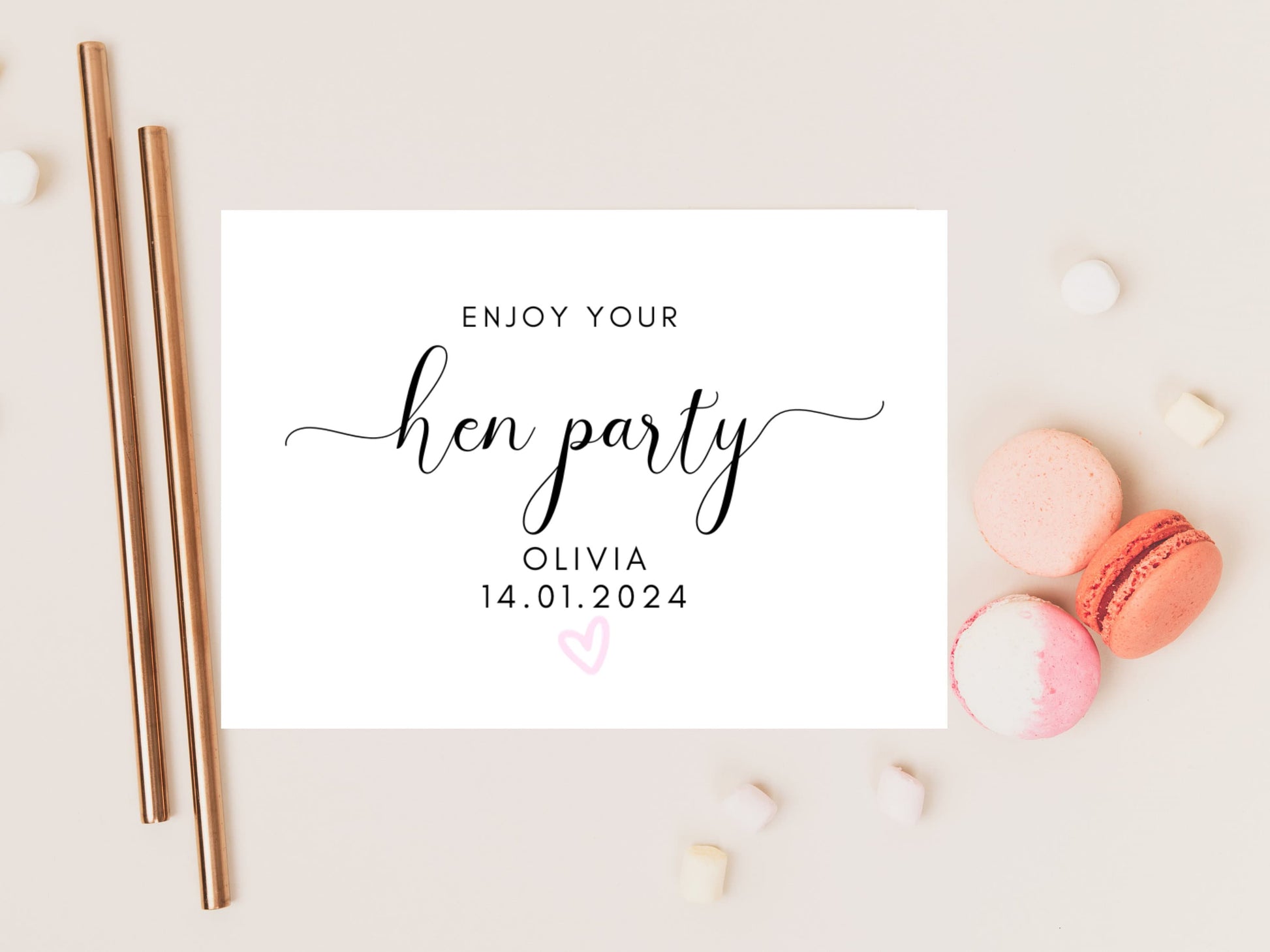 Enjoy Your Hen Party Card/ Personalised Bride to Be Bridal Shower/ Bachelorette Boho Pink Heart Hen Party Weekend Card