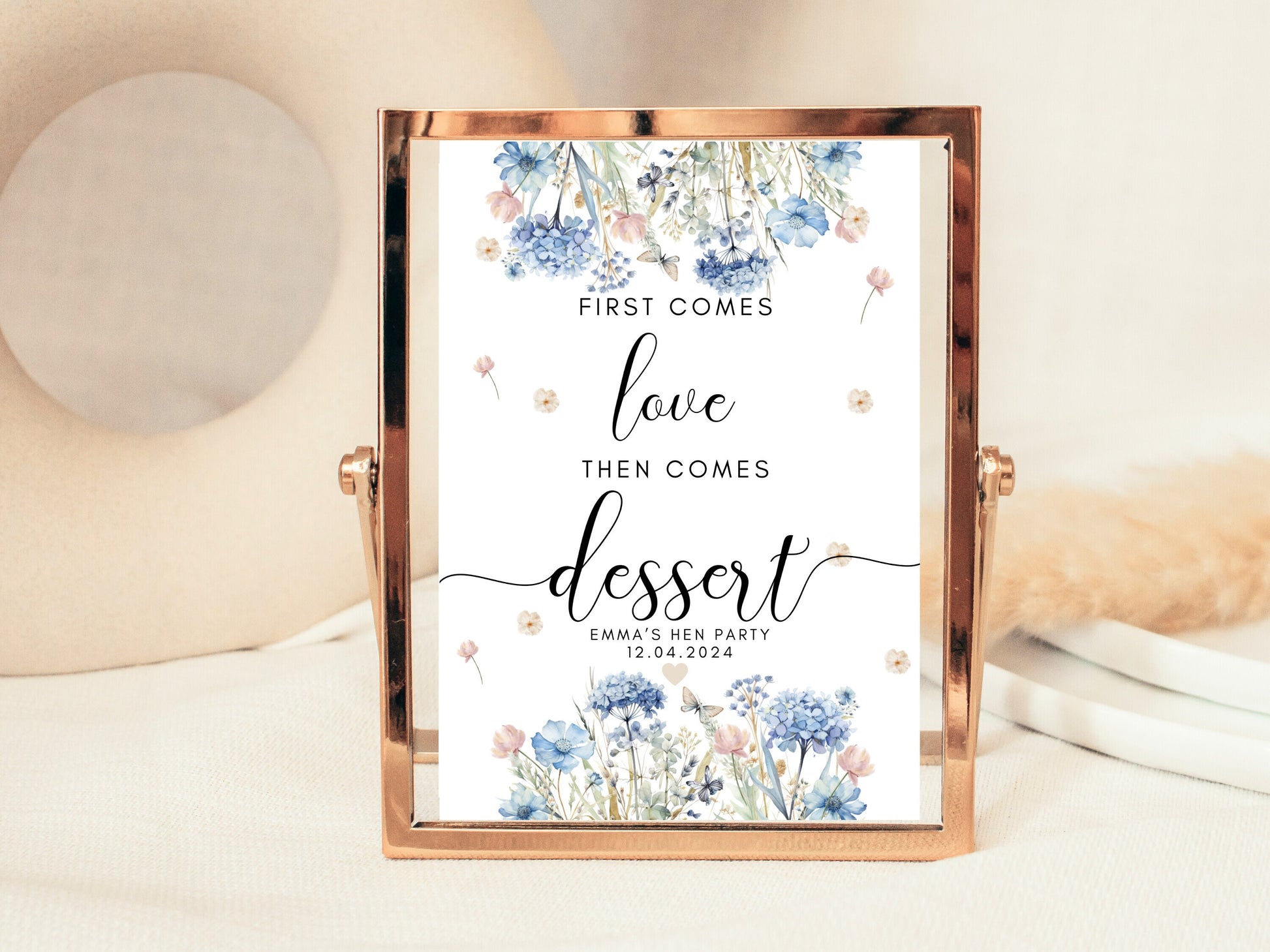 First Comes Love Then Comes Dessert Sign/ Sweets Pick n Mix Cake Cupcake/ Blue Theme Wedding Reception Guest Presents/ Please Take A Favour