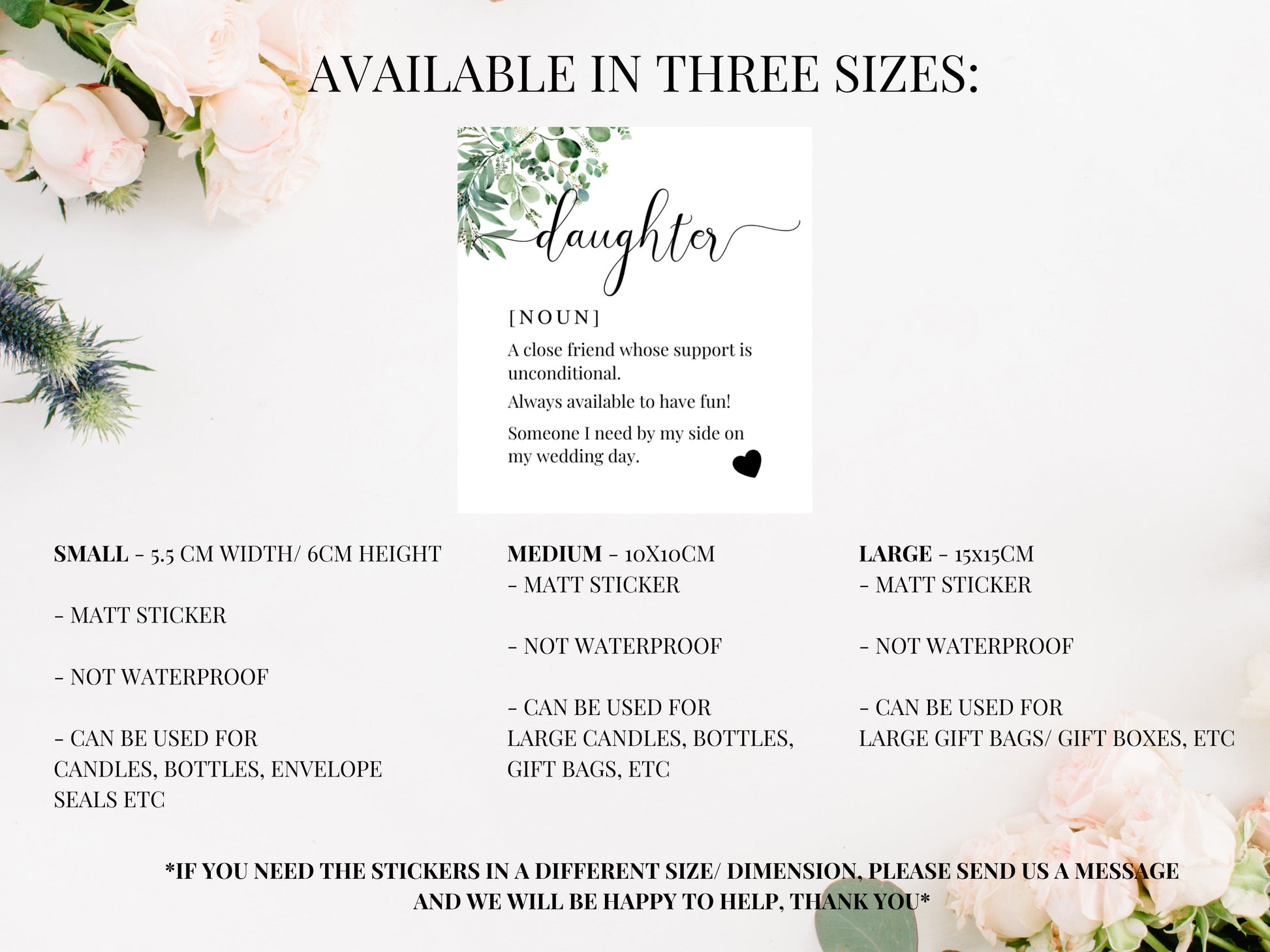 Floral Bridesmaid Definition Label/ Greenery Wedding Proposal Gift Box Label/ Hen Do Gift Bag Sticker/Eucalyptus Maid of Honour Candle Label