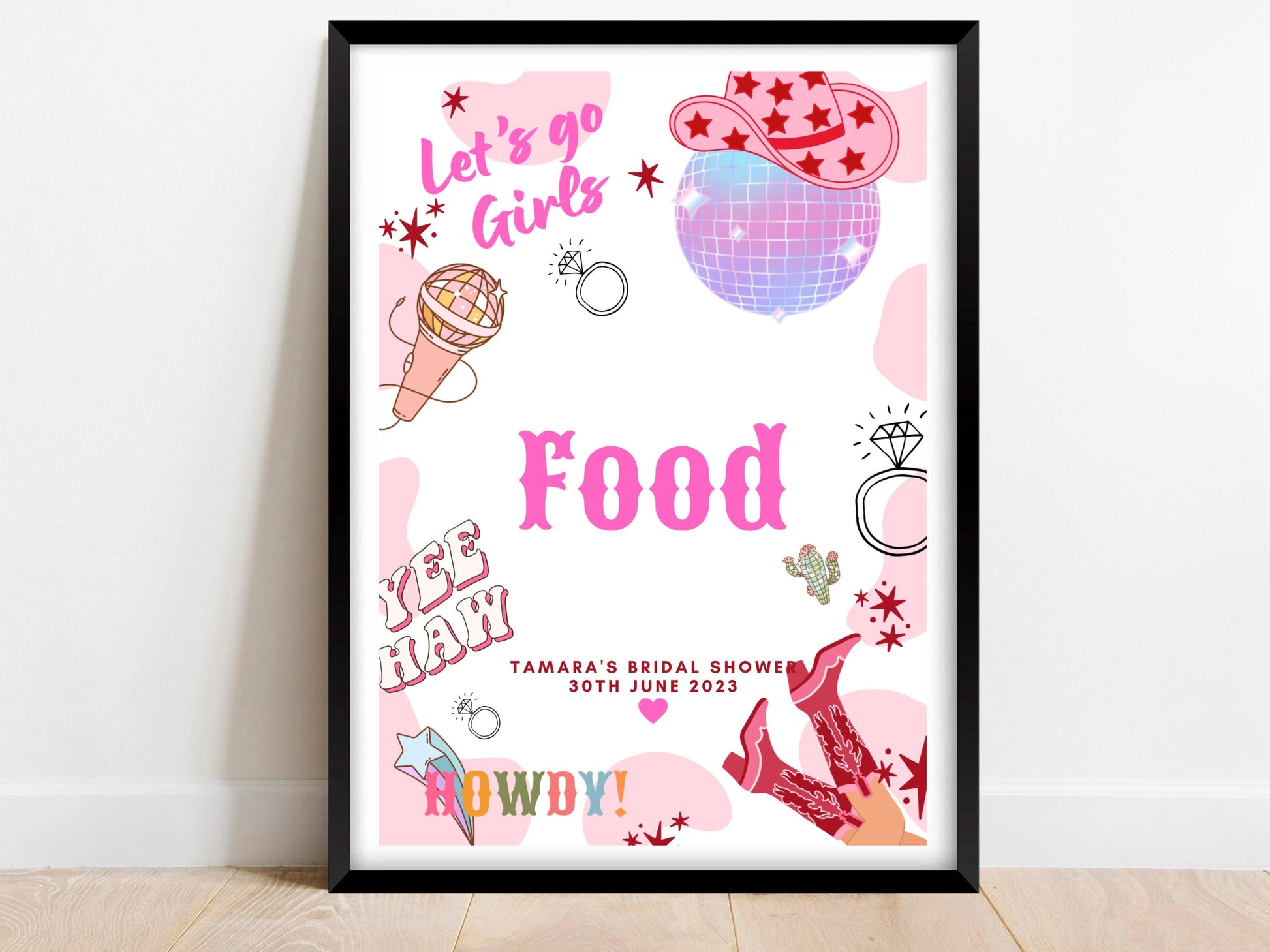 Food Sign/ Last Rodeo Personalised Cowgirl Disco Ball Hen Party/ Bridal Shower/ Last Disco/ Let's Go Girls Nashville/ Nash Bash Country Sign.