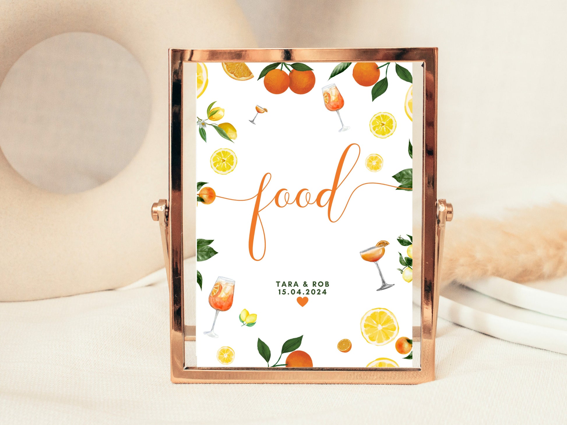 Food Sign/ Spring Summer Lemons Oranges Mediterranean/ Italian Style Wedding/ Food Snacks Cheeseboard Finger Food Evening Buffet Sign.