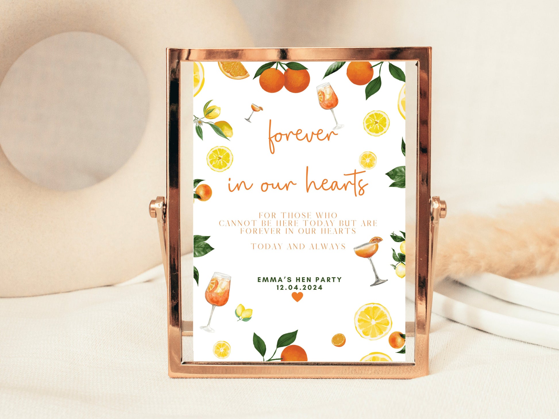Forever in our Hearts Sign/ In Loving Memory Spring Summer Lemons Oranges Mediterranean Theme/ Italian Style Wedding Reception Print.