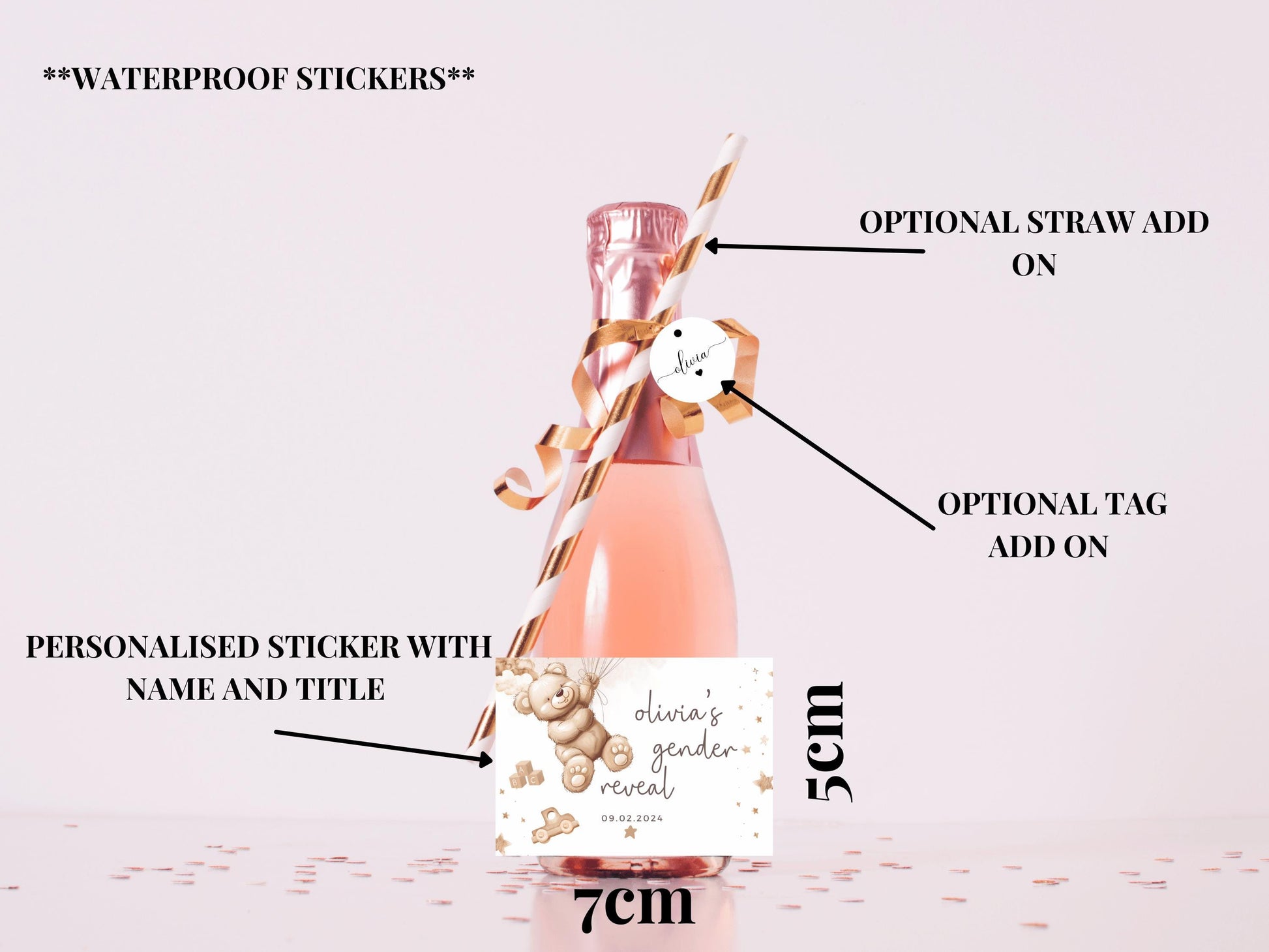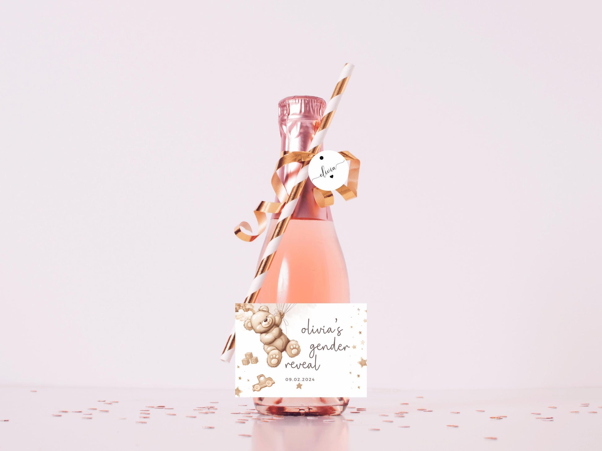 Gender Reveal Prosecco Bottle Stickers/ Personalised Neutral Baby Shower Label/ Brown Teddy Bear Balloons/ We Can Bearly Wait Decor Label