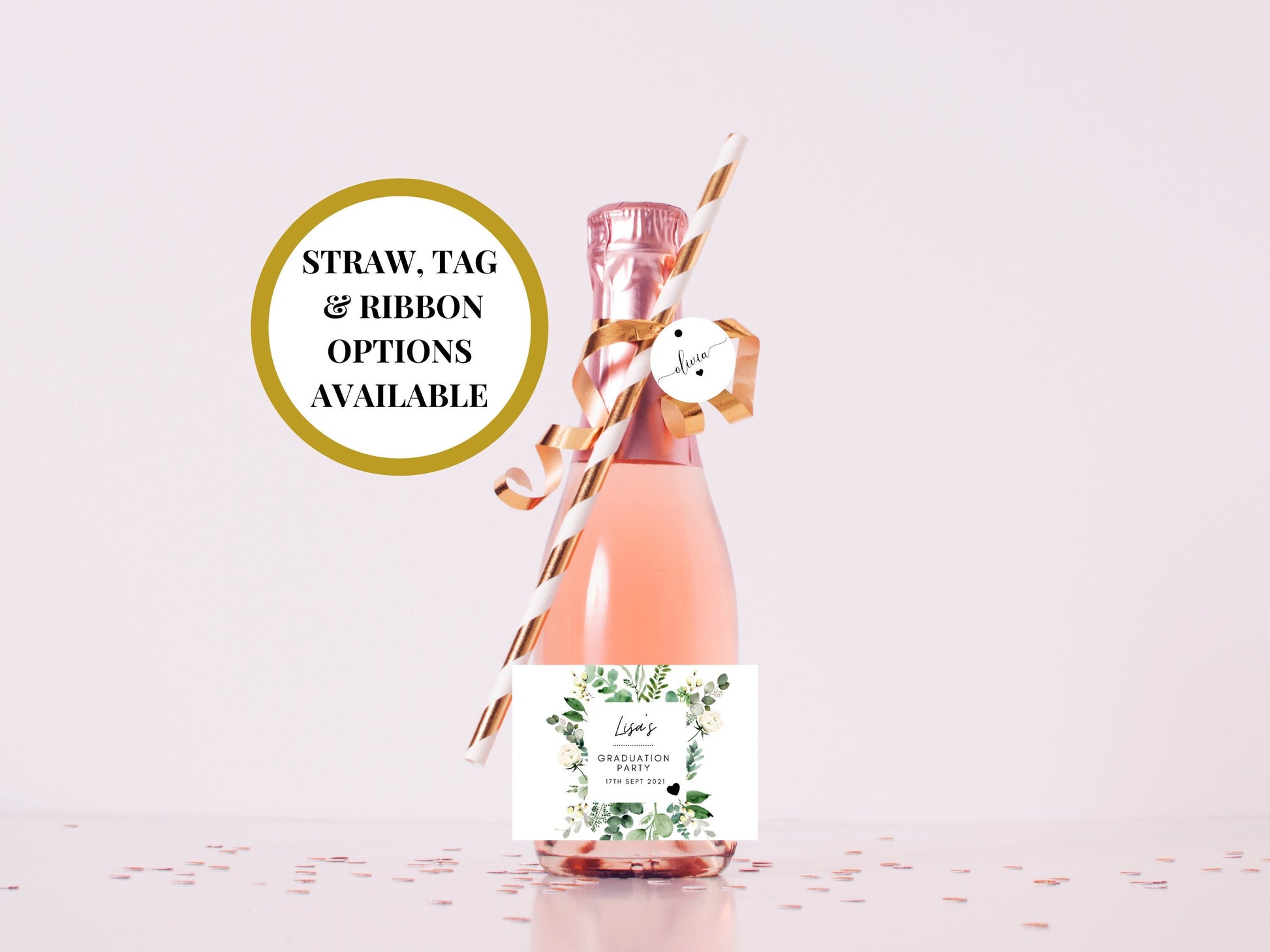 The straw which can be secured to the bottle using ribbon of your choice is available in Pink and White Stripe, Silver, Holographic/ Rainbow, Rose Gold, Red and White, Gold.
