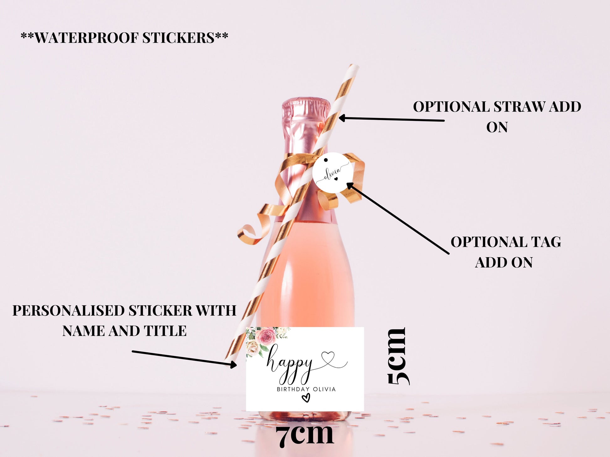 Happy Birthday Pink Floral Prosecco Bottle Label/ Personalised Champagne Bottle Sticker/ Birthday Party Decor/ Eucalyptus Greenery Label