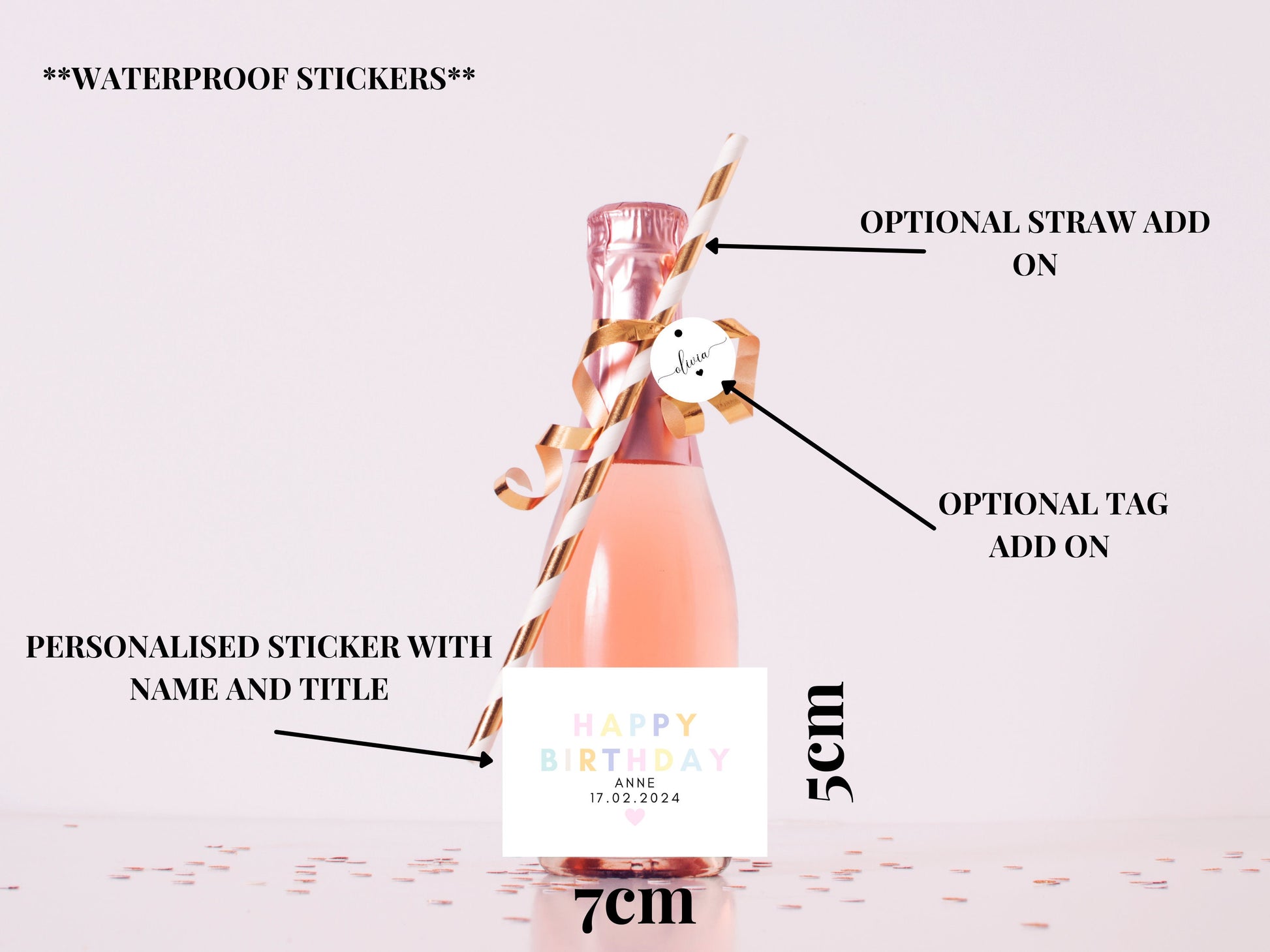 OPTION FIVE - Sticker, Ribbon, Name Tag and Straw