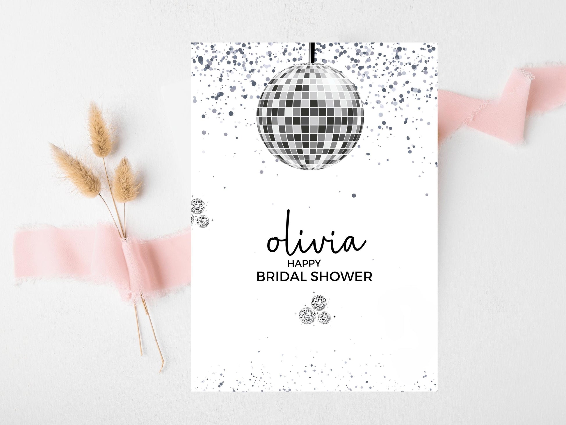 Happy Bridal Shower Card/ Personalised Silver Disco Ball Hen Party Greetings Card/ Team Bride Bridal Shower/ Last Disco Bachelorette Card.
