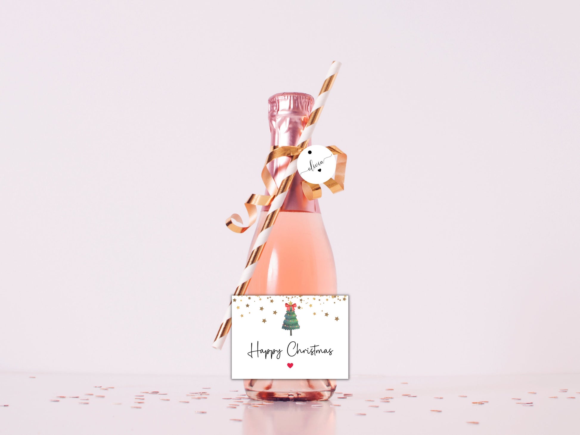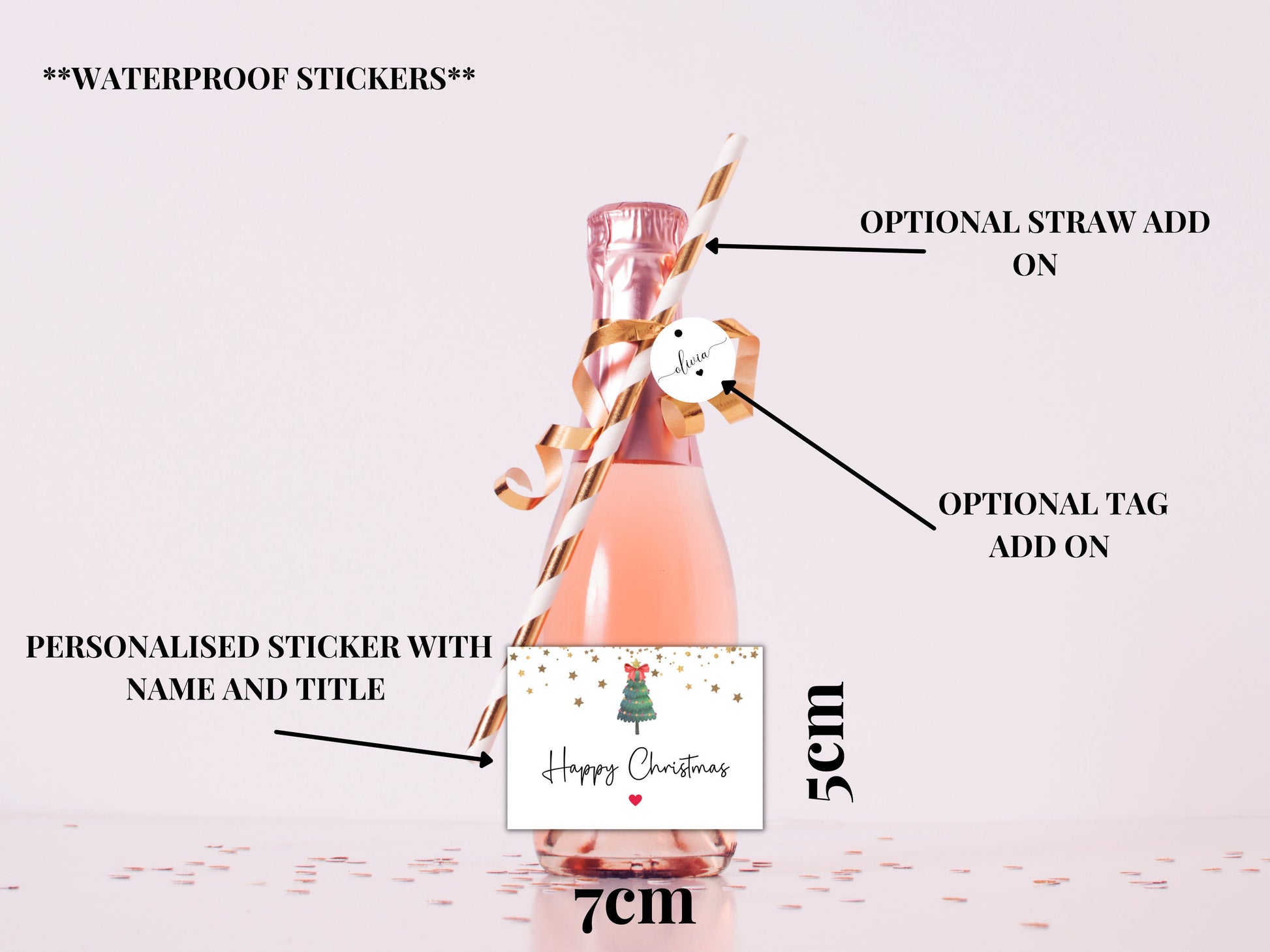 Happy Christmas Sticker/ Winter Christmas Gift/ Star Xmas Tree Red Bow Present Mini Wine Bottle Sticker/ Stocking Filler Gift Bag Label.