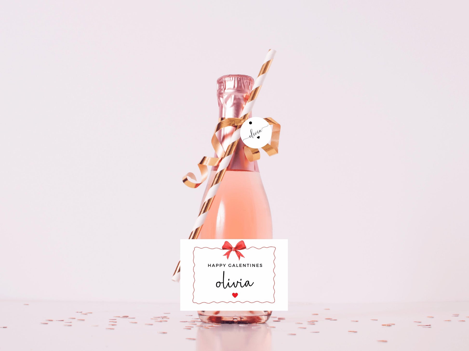 Happy Galentines Bottle Sticker/ Bestie Best Friend Mini Champagne/ Wine/ Prosecco Romantic Pink/ Red Heart Bow Label/ Galentines Gift.