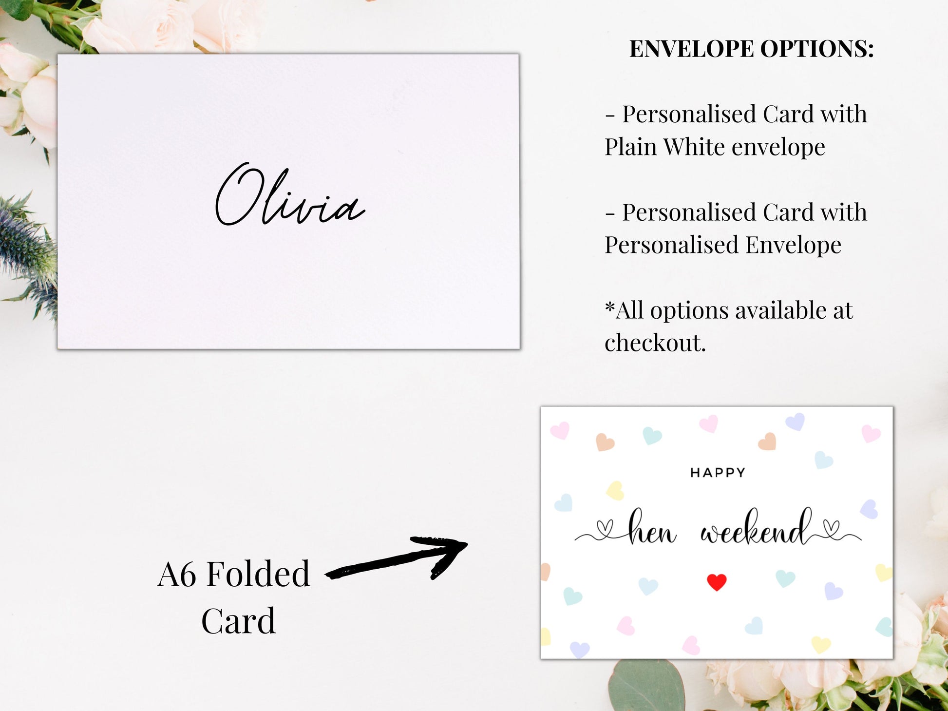 Happy Hen Weekend Card/ Soon to be Mrs Hen Party/ To the Bride to be/ Happy Hen Do Card/ To the Bride/ Personalised Bridal Shower Card.