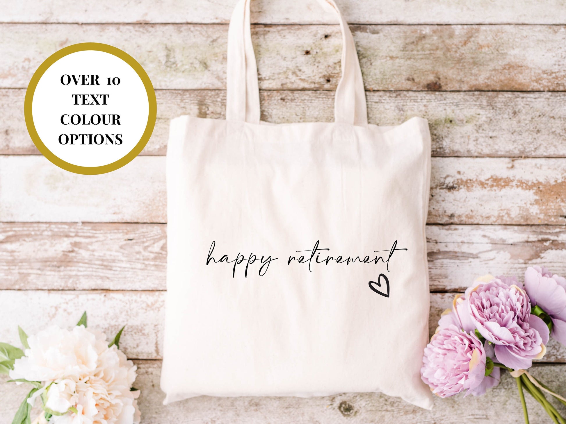 Happy Retirement Tote Bag/ Any Name Natural Cotton Weekend Shopper Bag/ Retirement Party Gift Bag/ Happy Retirement Bag/ Leaving Party Gift