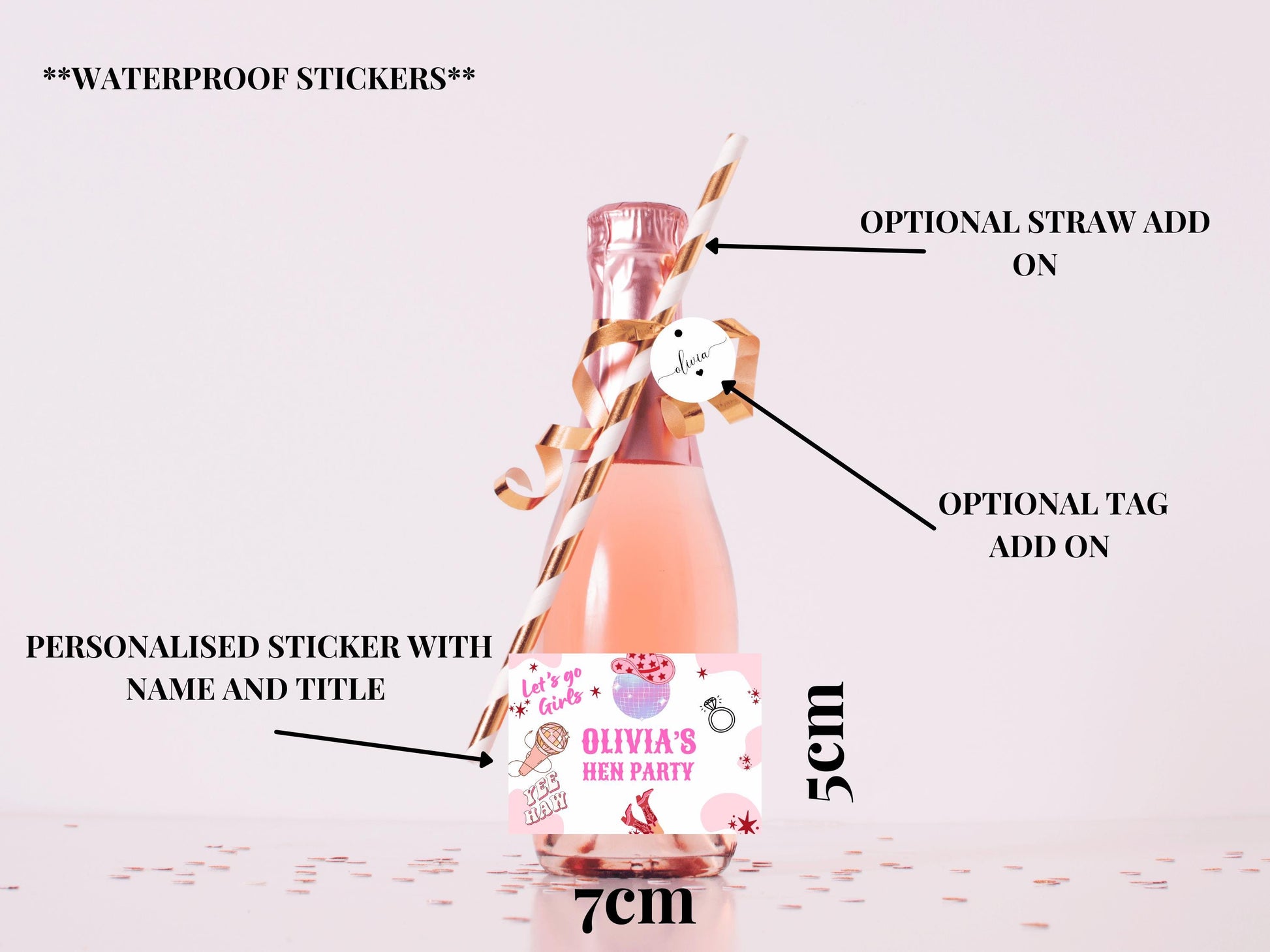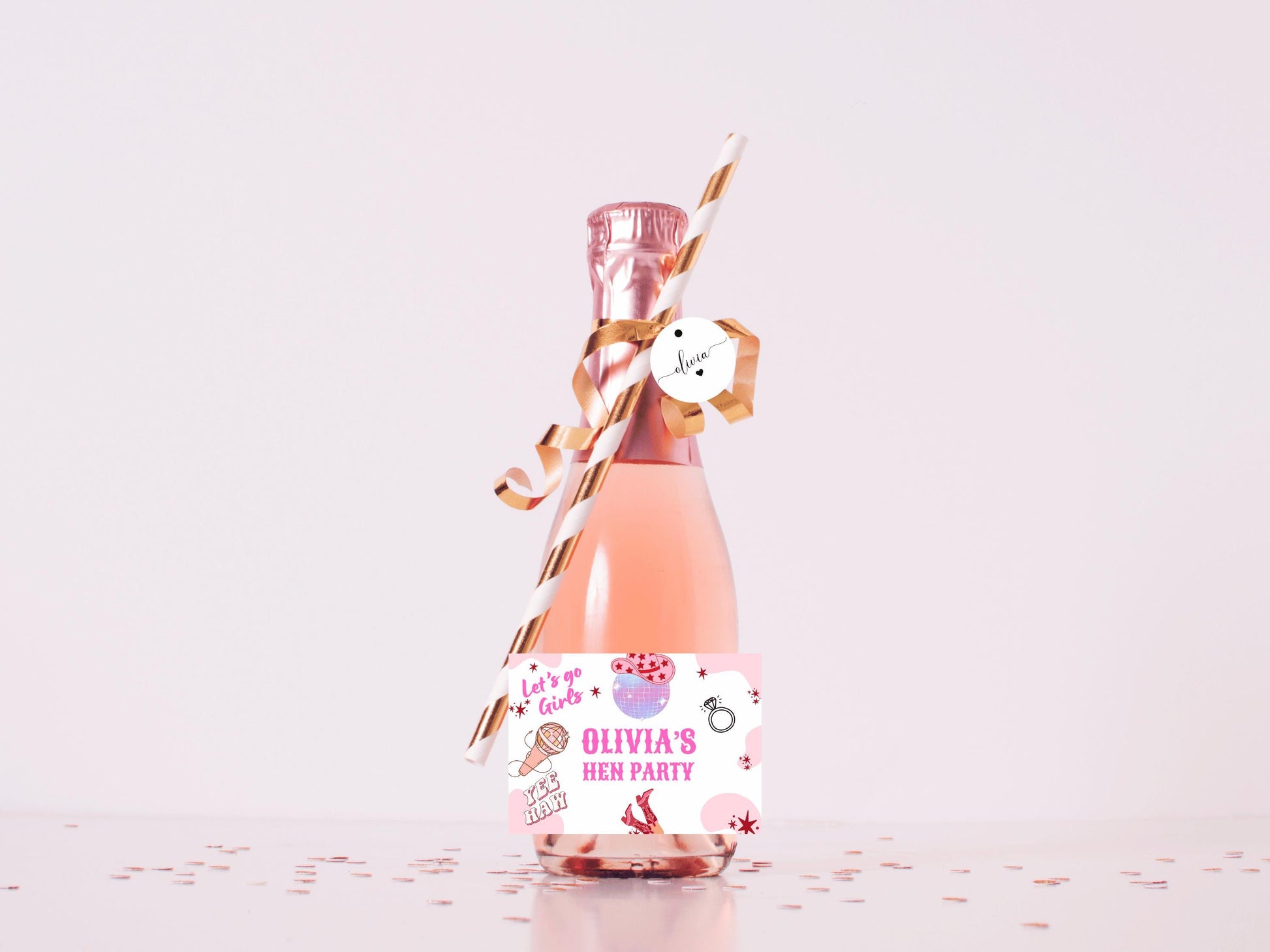 Hen Party Mini Prosecco Wine Bottle Label/ Last Rodeo Personalised Bridal Shower/ Let's Go Girls Nashville/ Nash Bash Country Sticker Decor.