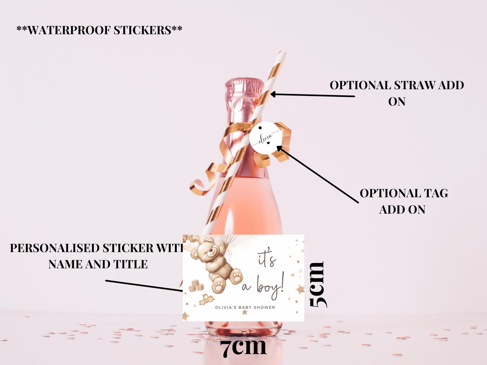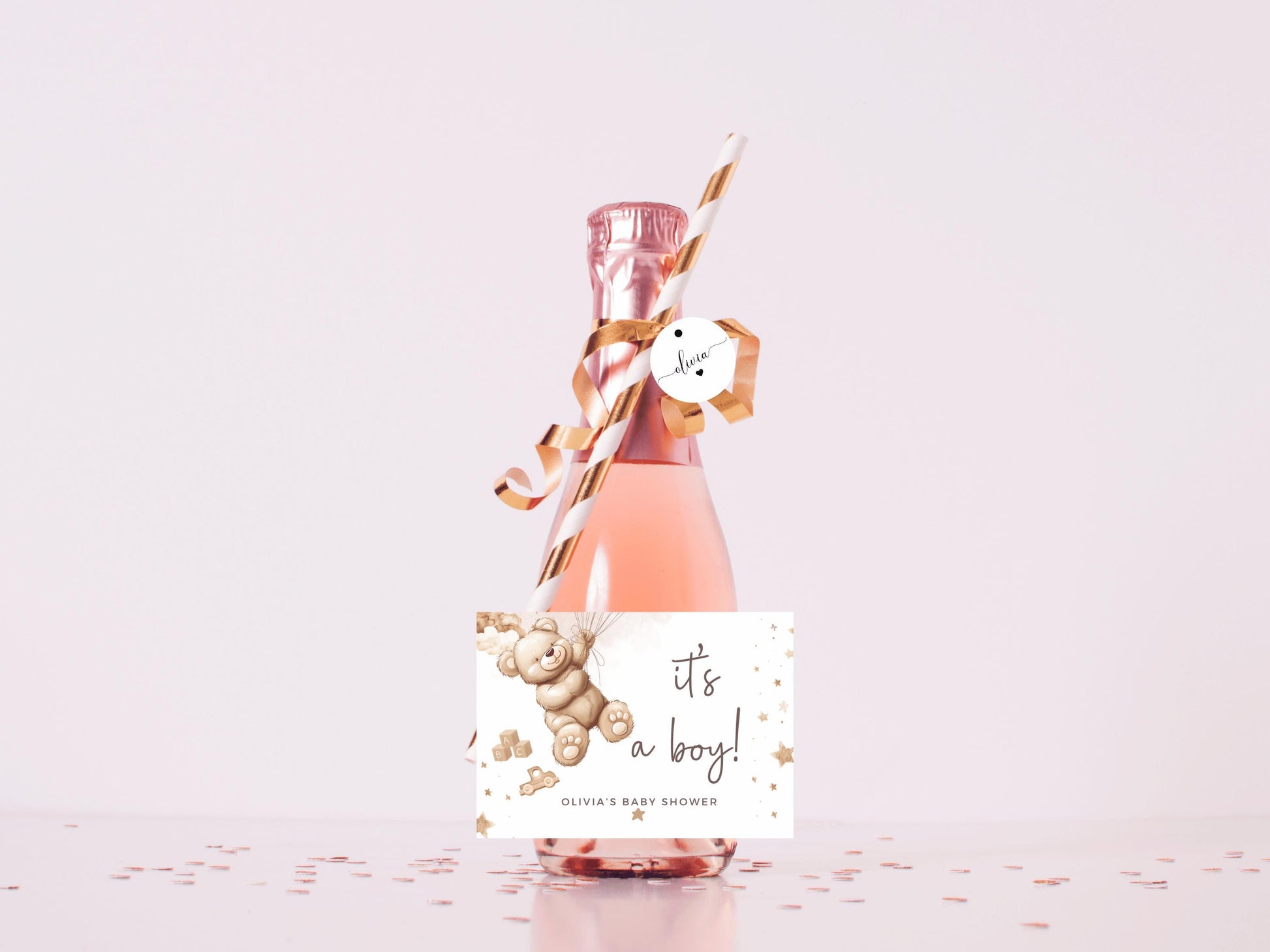 Its a Boy Baby Shower Prosecco Bottle Stickers/ Personalised Neutral Gender Reveal Label/ Brown Teddy Bear Balloons/We Can Bearly Wait Label