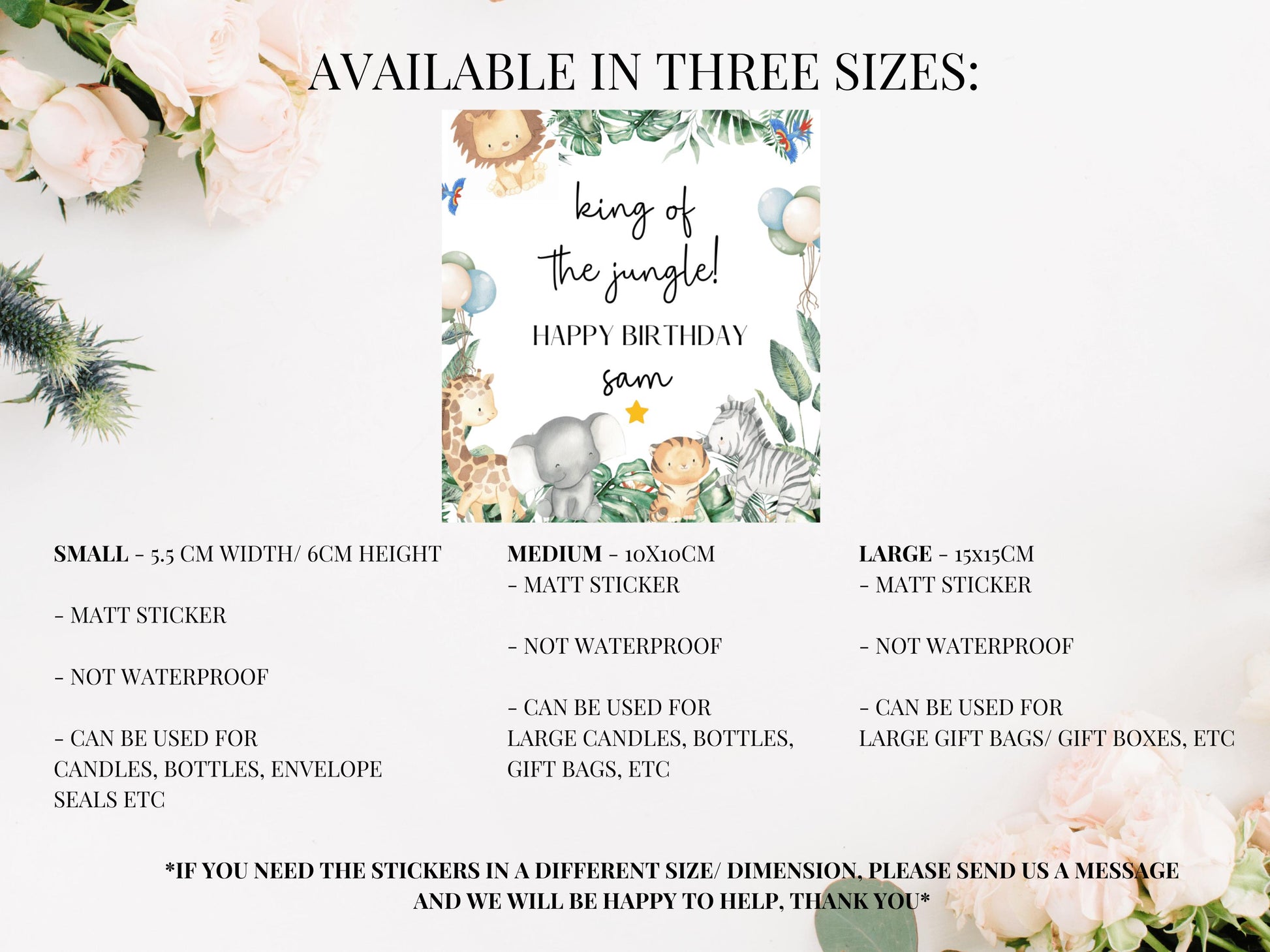 King of the Jungle Happy Birthday Gift Box Label/ Personalised Bag Sticker/ Safari Theme Party Favours Label/ Animals King of the Jungle.