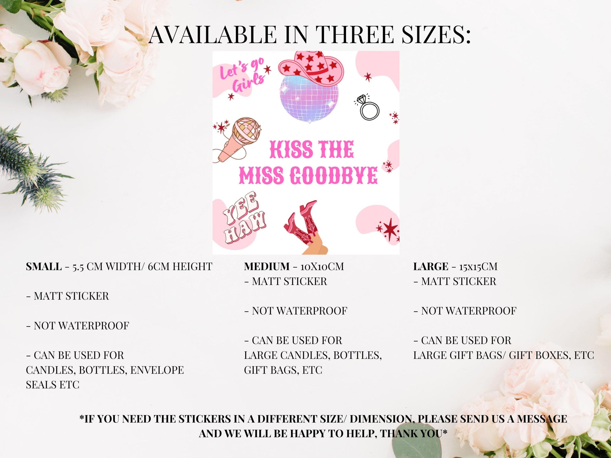 Kiss the Miss Goodbye Hen Party Candle Sticker/ Bachelorette Party Last Rodeo Personalised Bridal Shower/ Let's Go Girls Nashville Country
