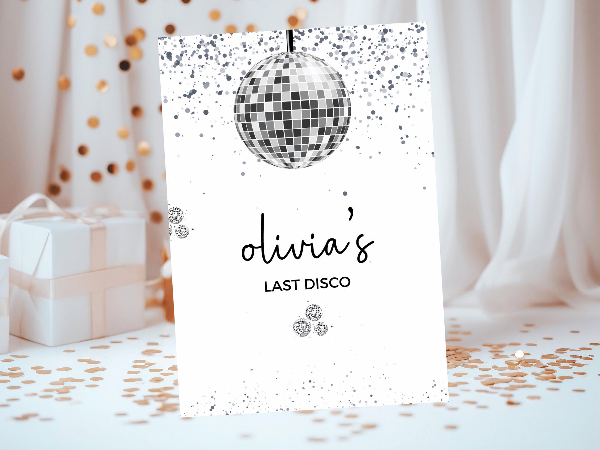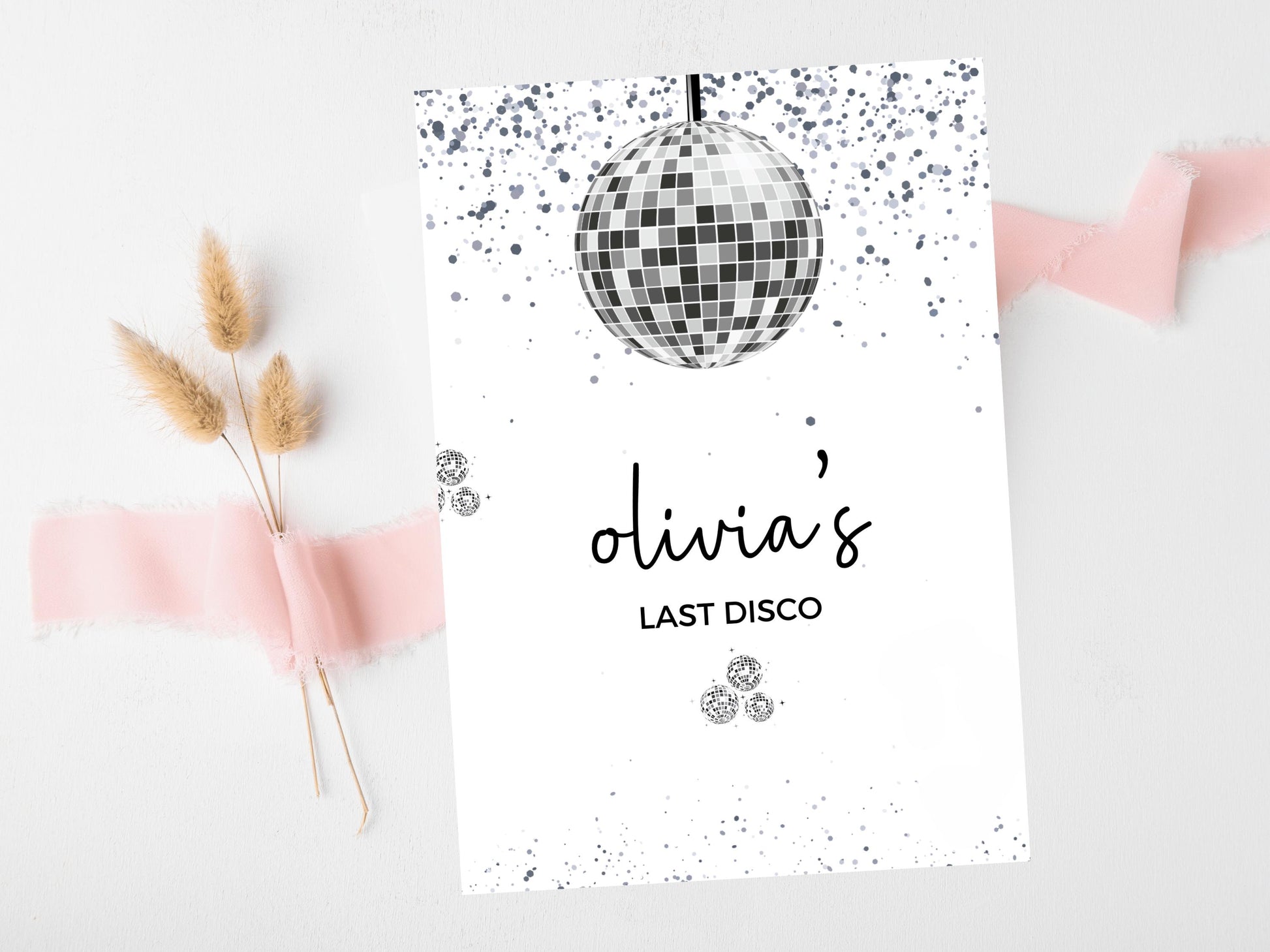 Last Disco Card/ Personalised Silver Disco Ball Hen Party Weekend Greetings Card/ Team Bride Bridal Shower/ Last Disco Bachelorette Card.
