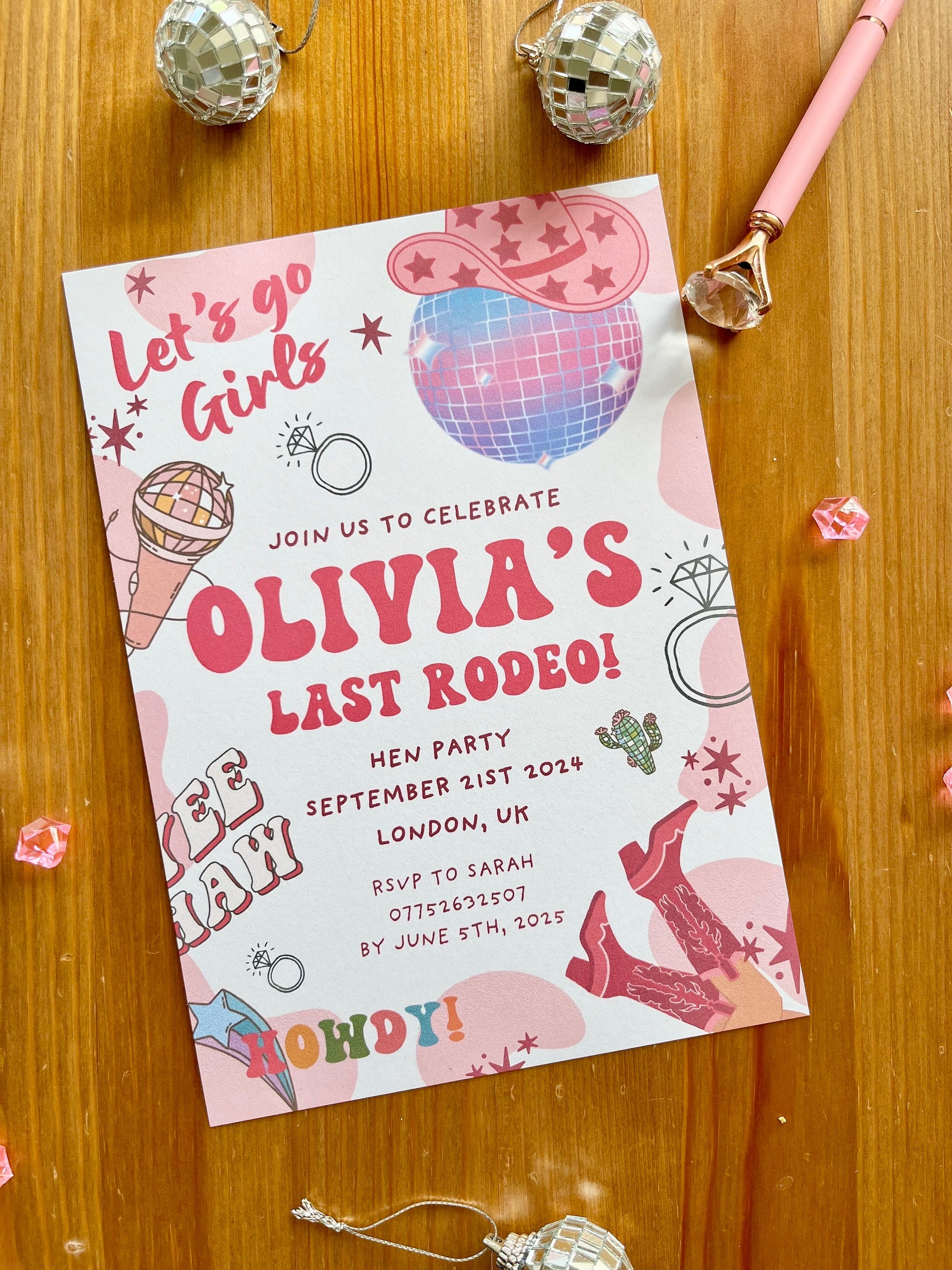 Personalised Last Rodeo Hen Party Invitation/ Cowgirl Cowboy Disco Theme Bridal Shower/ Let's Go Girls Bachelorette Party/ Nash Bash Country/ Groovy Disco