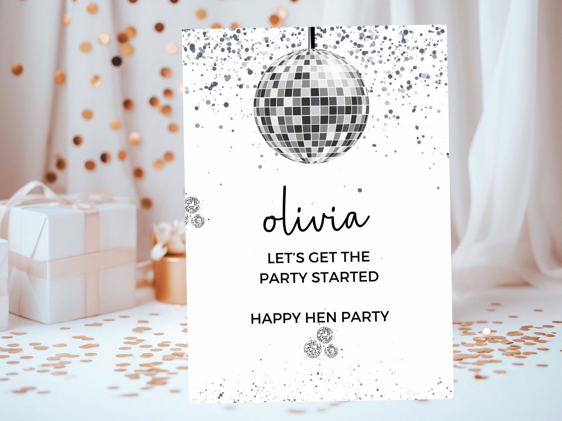 Lets Get the Party Started Hen Party Card/ Personalised Silver Disco Ball Hen Party Greetings Card/ Team Bride Bridal Shower/ Last Disco