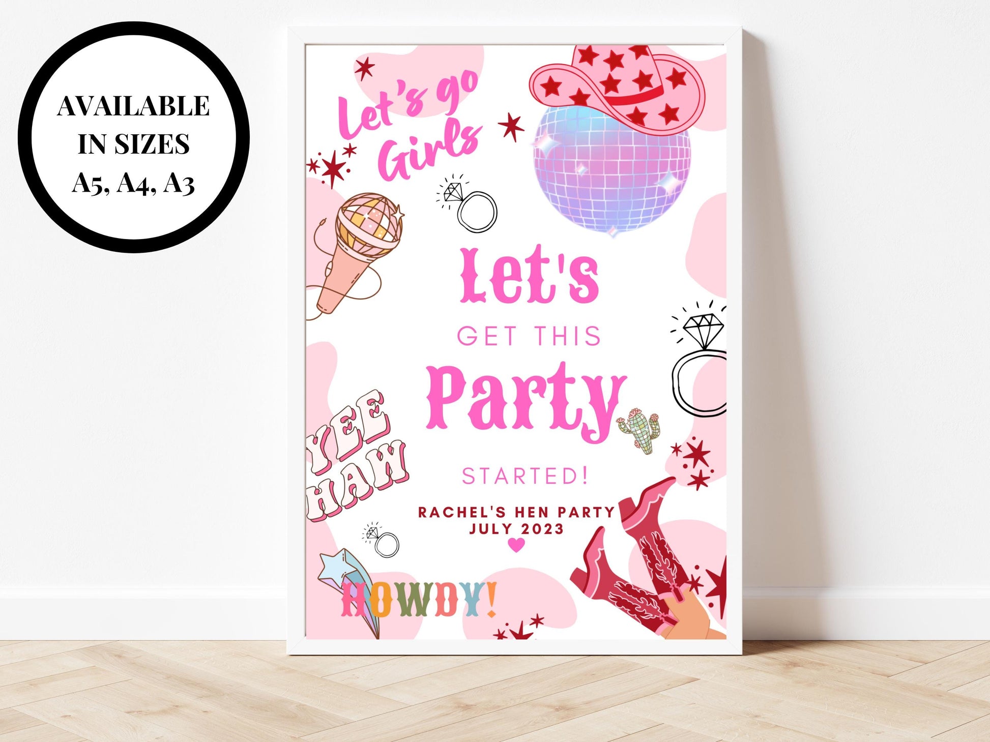 Lets Get This Party Started Last Rodeo Sign/ Cowgirl Disco Ball Hen Party/ Bridal Shower/ Let's Go Girls Nashville/ Nash Bash CountrycSign.