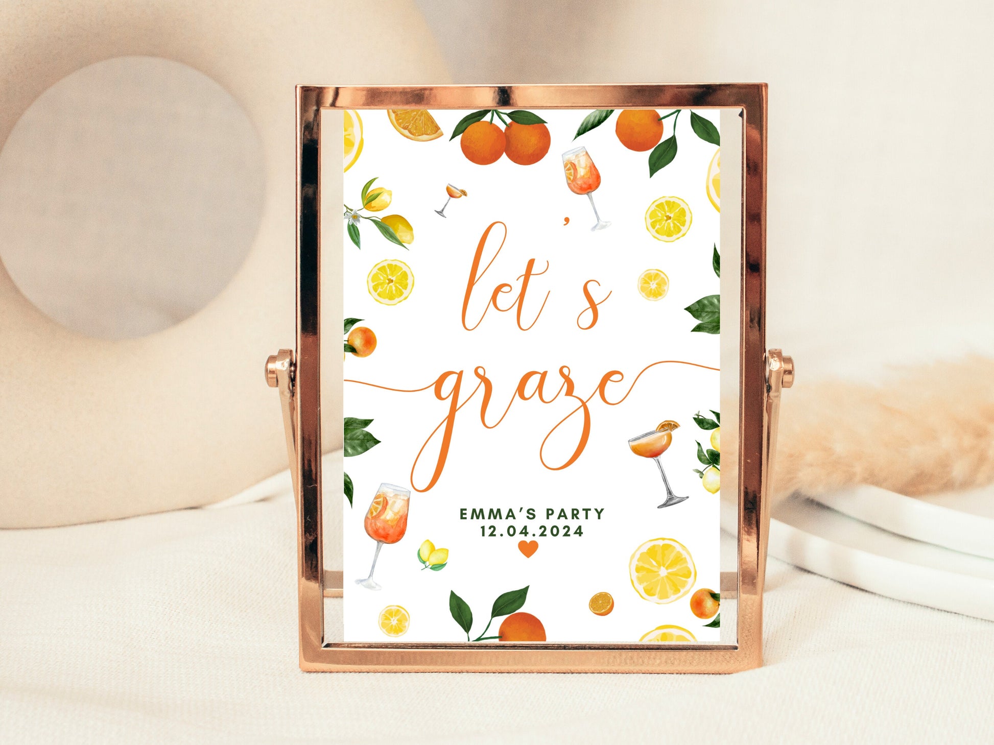 Lets Graze Sign/ Spring Summer Lemons Oranges Mediterranean/ Italian Style Wedding/ Food Snacks Cheeseboard Finger Food Evening Buffet Sign