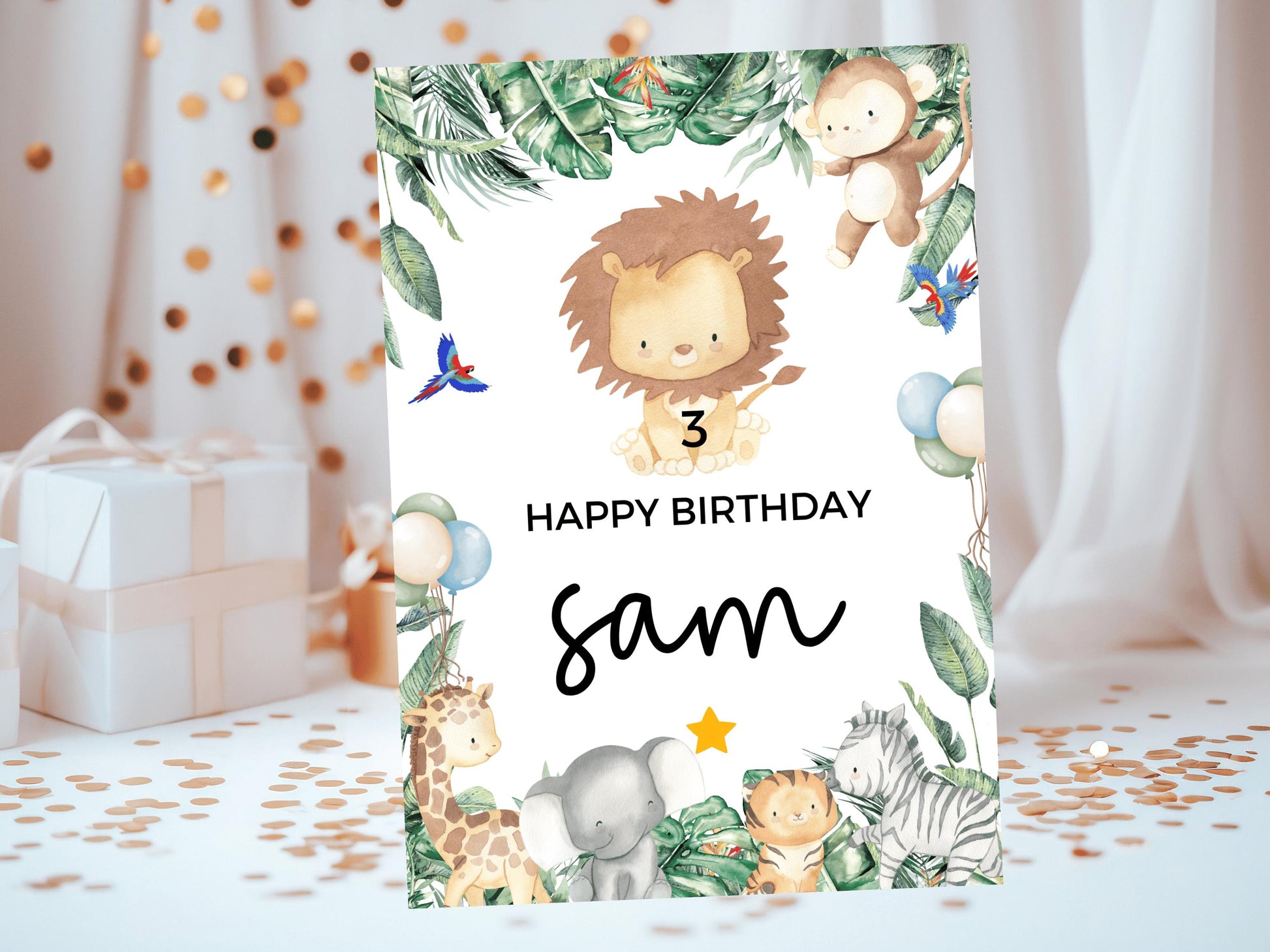 Lion Happy Birthday Card/ Safari Theme Birthday Greetings Cards/ Childrens Birthday Party/ Jungle Animals Lion/ King of the Jungle Card