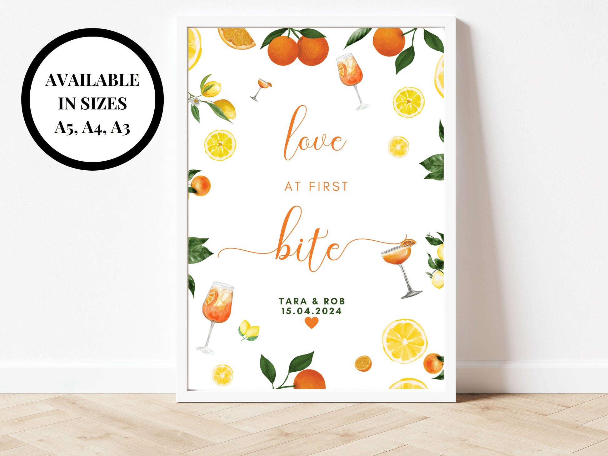 Love at First Bite Sign/ Snack Grazing Bar/ Take a Little or a Lot/ Enjoy the Treats/ Wedding Reception Poster/ Mediterranean/ Italian Style.