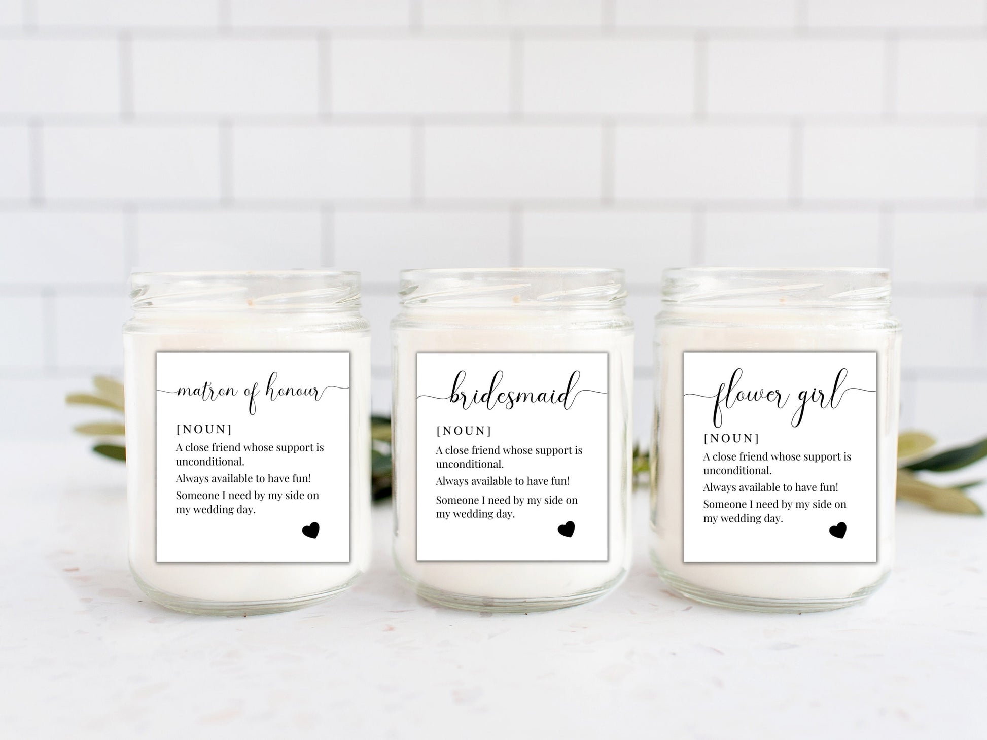 - These labels are perfect for customising you’re own gifts - my “Will You Be My Bridesmaid?” candles look amazing!