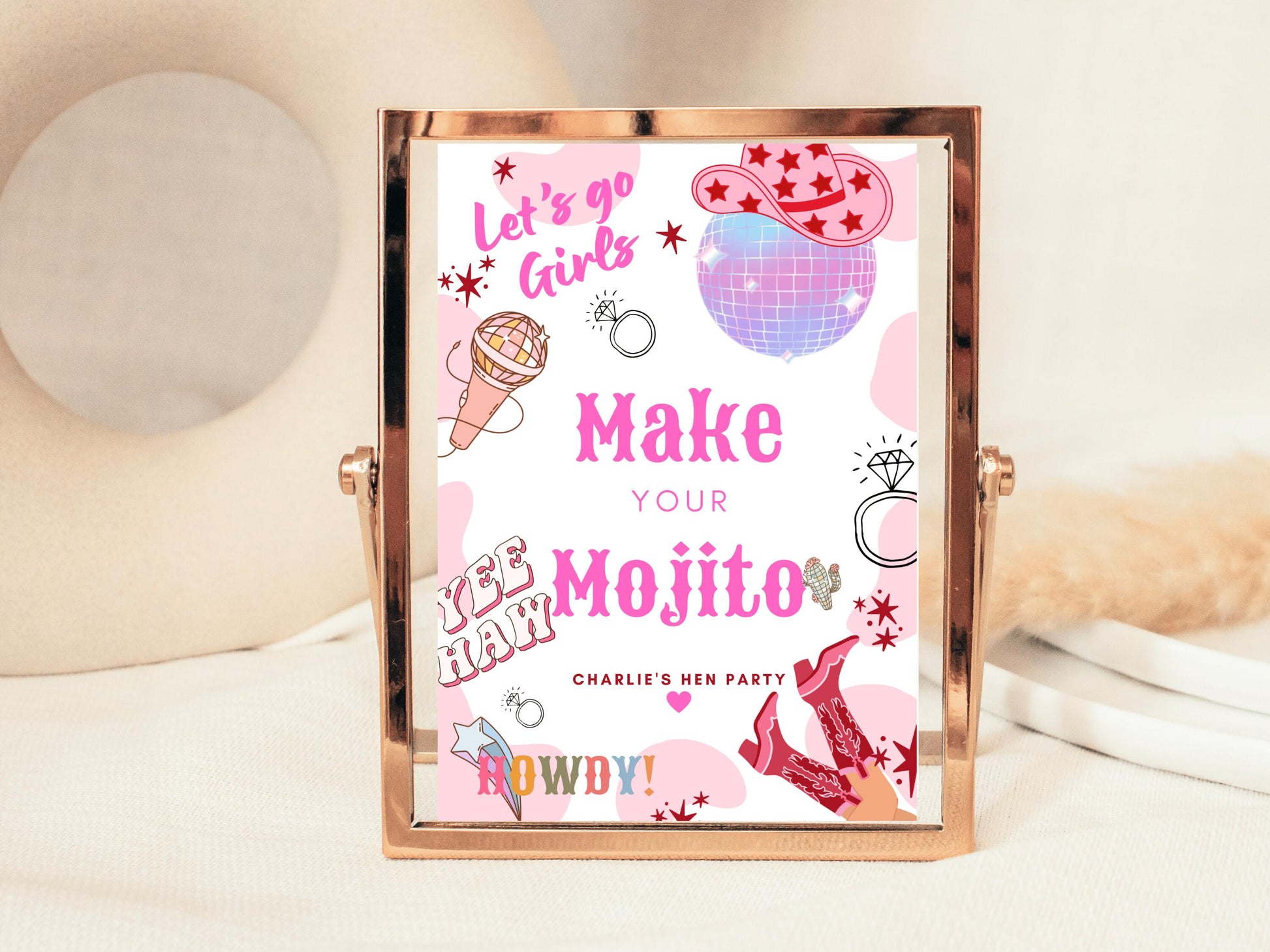 Make Your Mojito Sign/ Last Rodeo Personalised Disco Ball Hen Party/ Drinks Alcohol/ Let's Go Girls Nashville/ Nash Bash Country Sign
