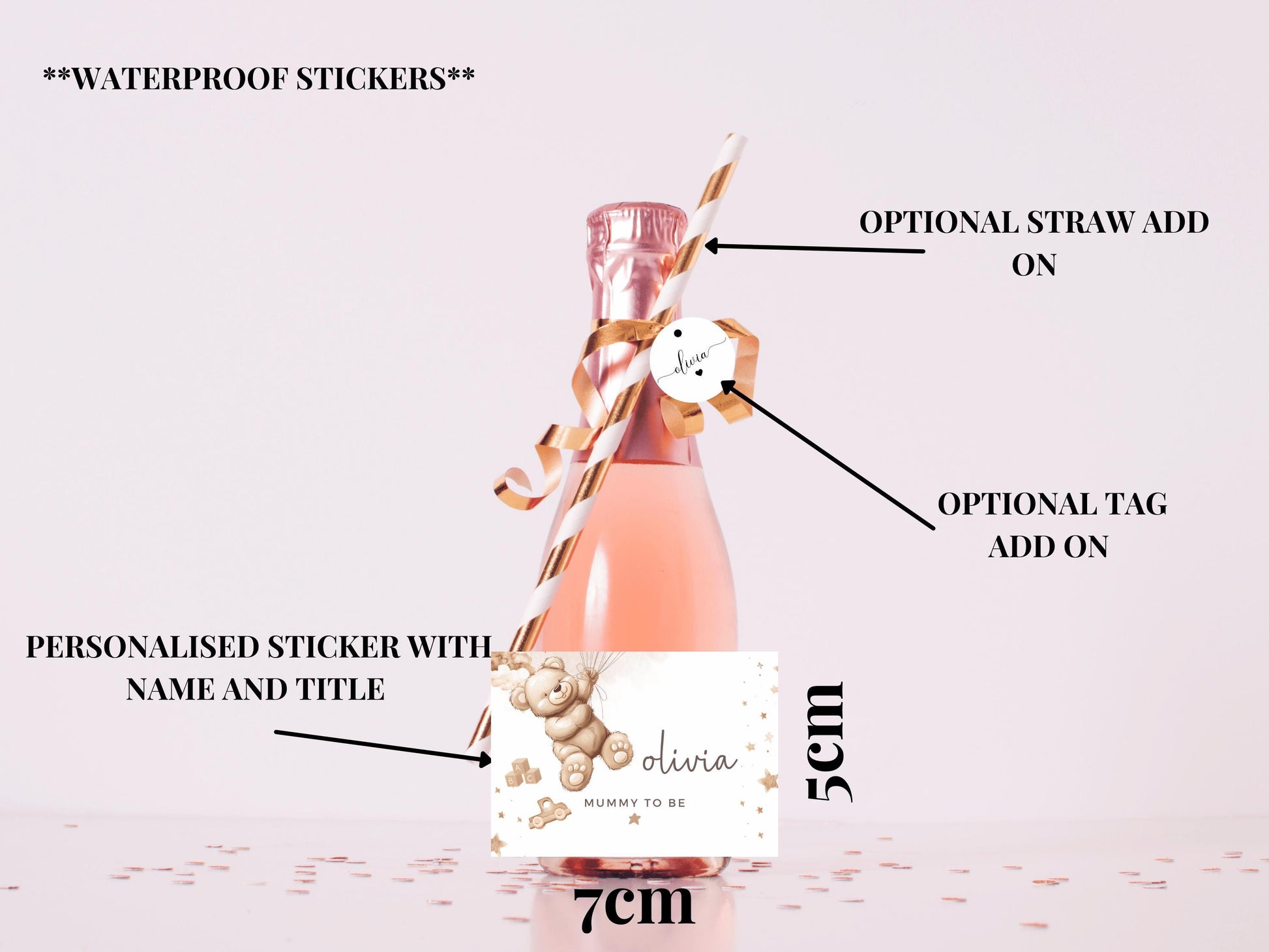 Mummy to Be Baby Shower Prosecco Bottle Stickers/ Personalised Neutral Gender Reveal/ Brown Teddy Bear Balloons/ We Can Bearly Wait Label.