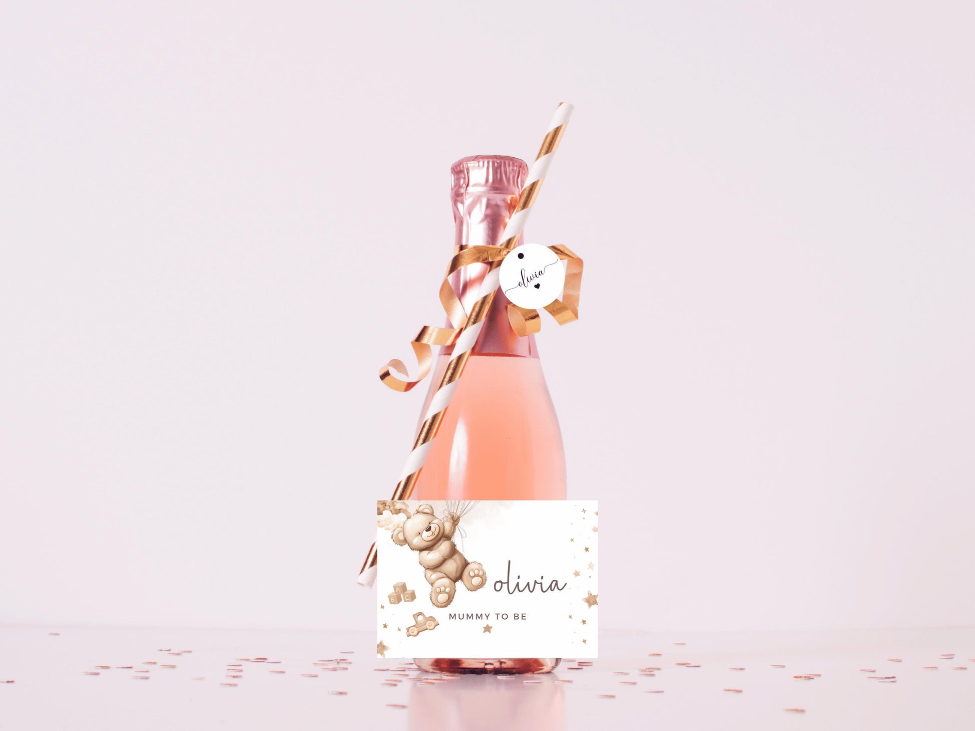 Mummy to Be Baby Shower Prosecco Bottle Stickers/ Personalised Neutral Gender Reveal/ Brown Teddy Bear Balloons/ We Can Bearly Wait Label