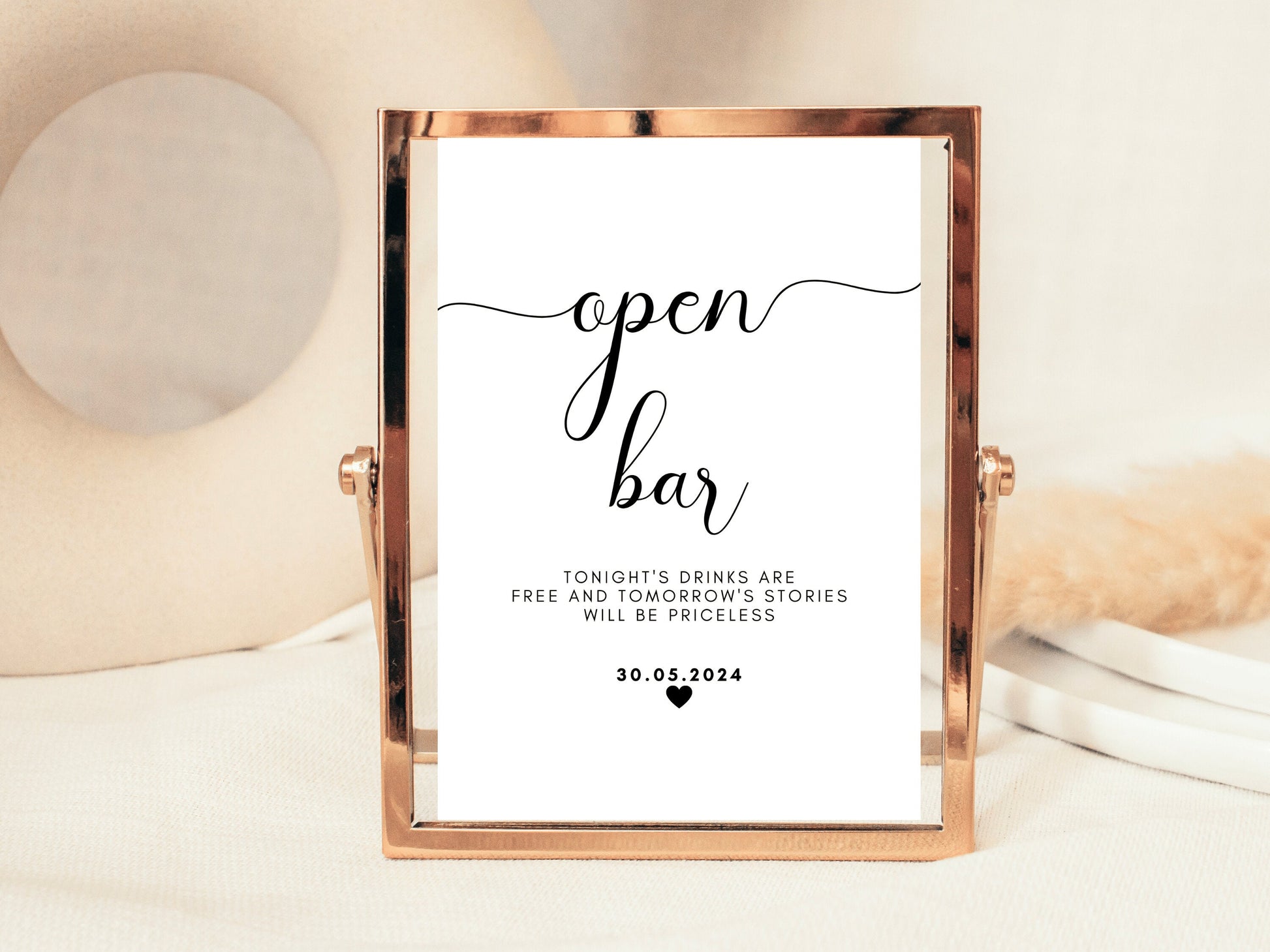 Open Bar Sign/ 24 Text Colour Options/ Match Your Party Venue Colour Scheme/ Tonights Drinks Are Free and Tomorrows Stories Are Priceless.