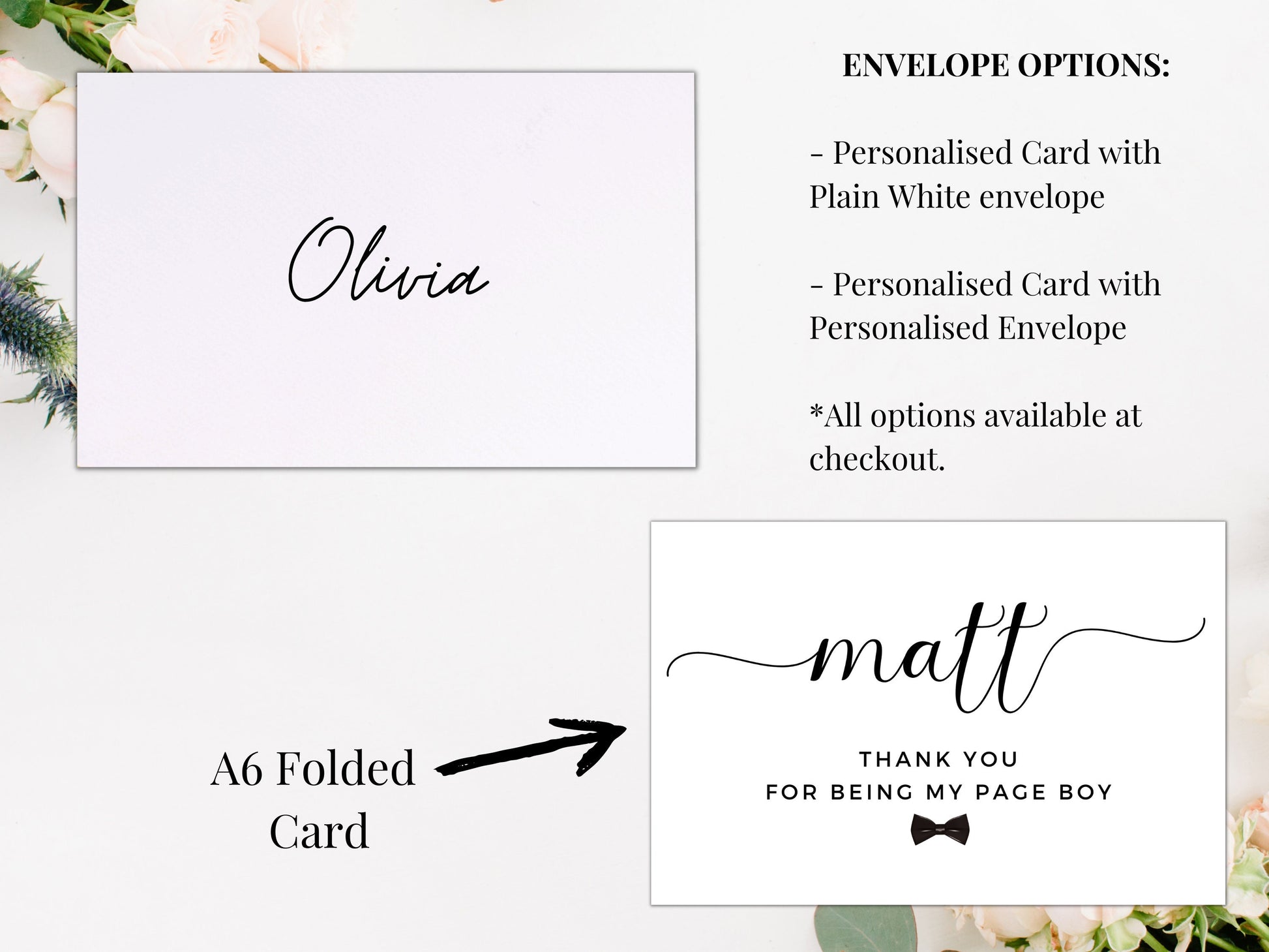 Page Boy Thank You Card/ Personalised Thank You For Being My Page Boy Card/ Gift for Usher Appreciation Card/ Card for Groomsman/ A40/ A51