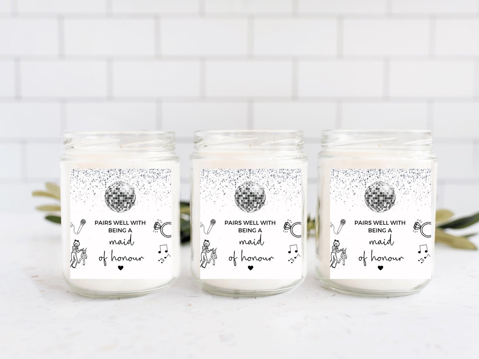 Pairs Well With Being a Maid of Honour Candle Label/ Personalised Silver Disco Ball Hen Party Candle Favour/ Bridal Shower Sticker
