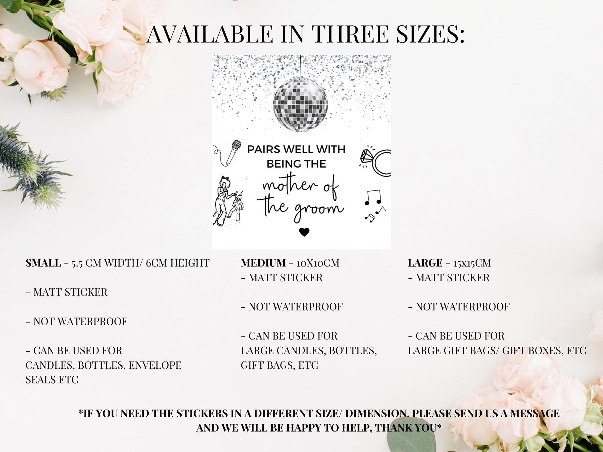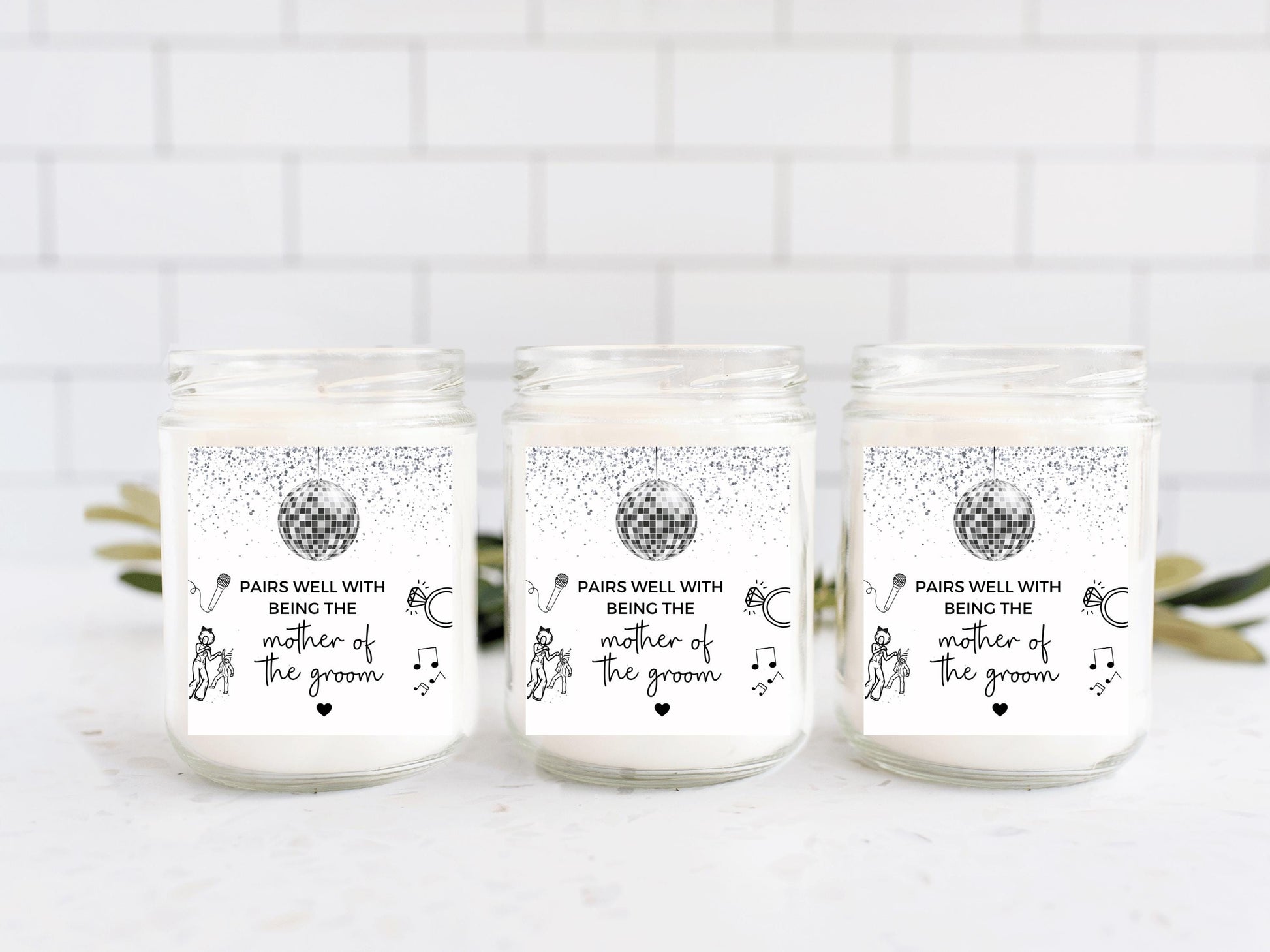 Pairs Well With Being the Mother of the Groom Candle Label/ Personalised Silver Disco Ball Hen Party Candle Favour/ Bridal Shower Sticker