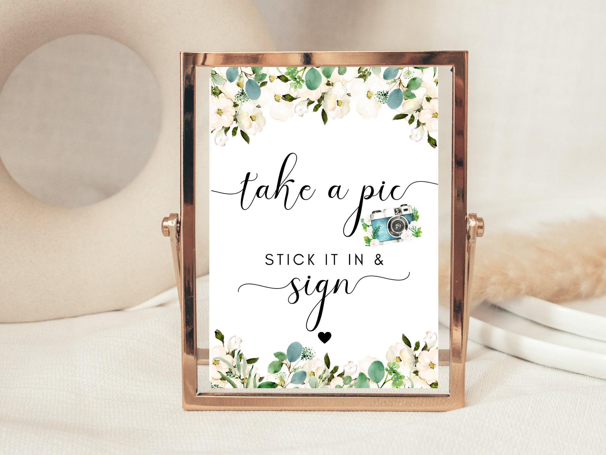 Personalised Birthday Photo Sign/ Greenery Floral Happy Birthday Party Decor Take A Pic and Stick It In/ Eucalyptus Photo Booth Selfie Sign
