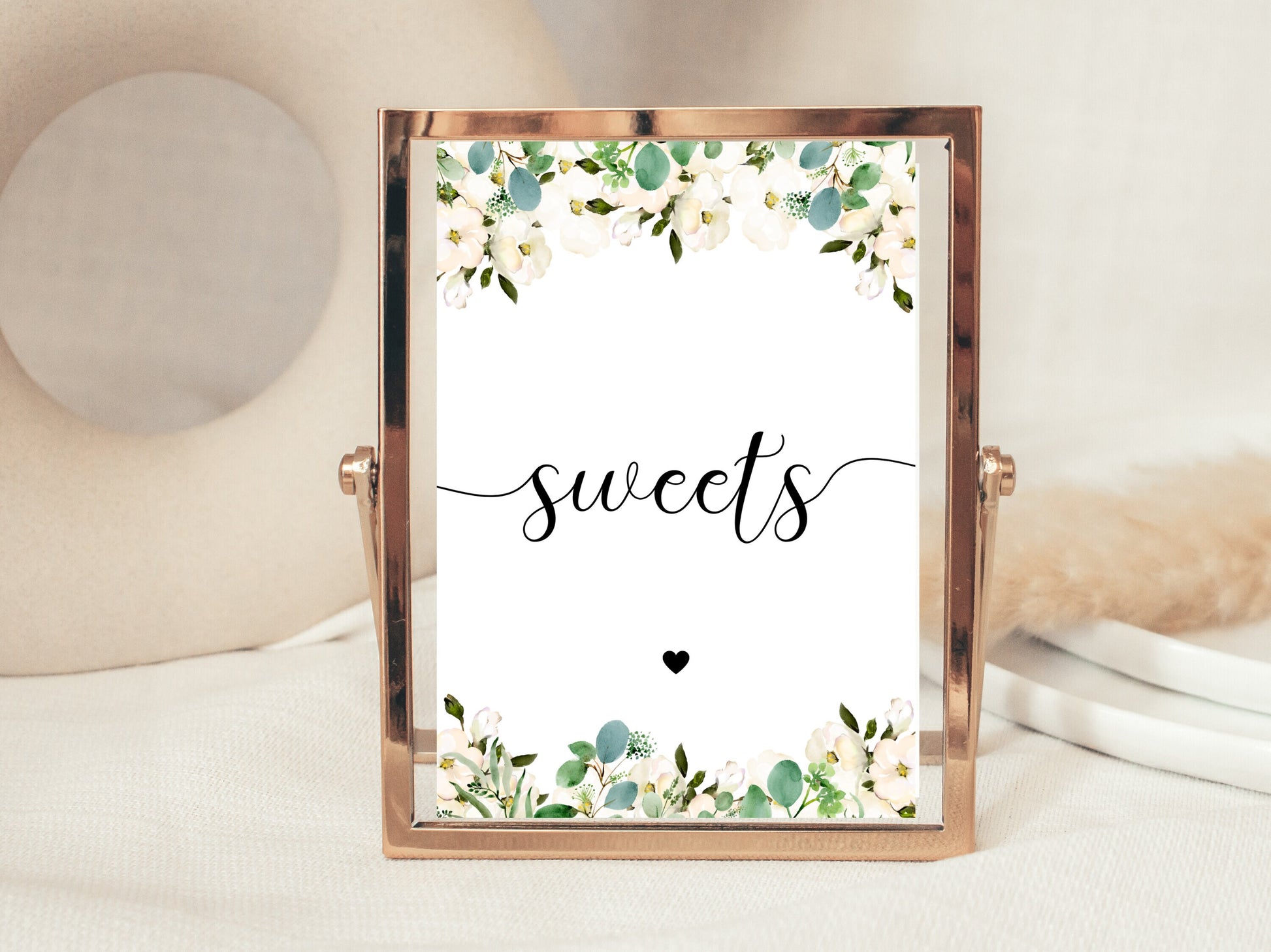 Personalised Birthday Sweets Sign/ Greenery Floral Happy Birthday Party Decorations Pick and Mix Poster/ Eucalyptus Cupcake Sweets Sign
