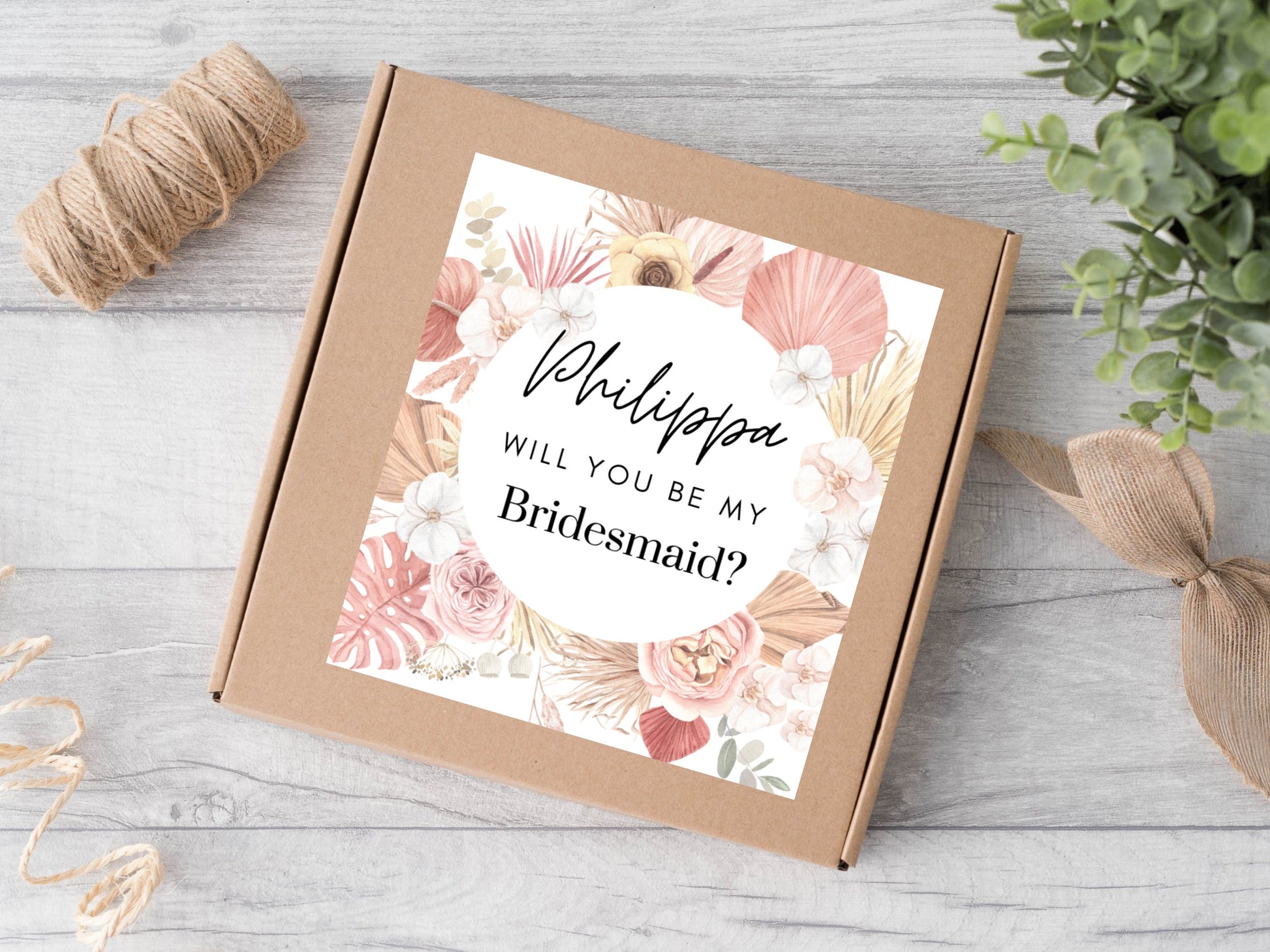 Personalised Blush Gold Pampas Will You Be My Bridesmaid Label/ Pink Blush Proposal Box Filler/ Boho Bachelorette/ Maid of Honour Label/ A05