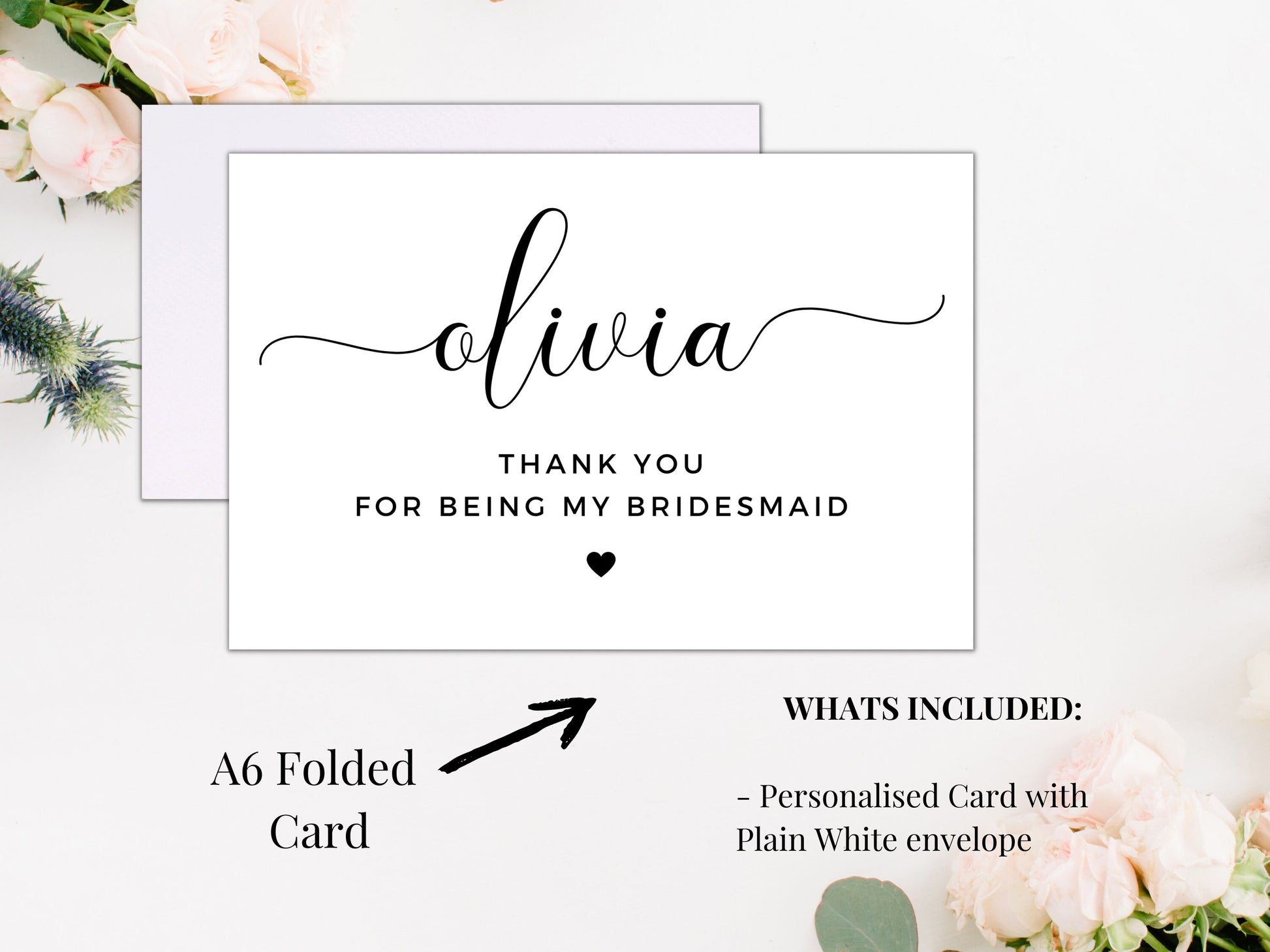 Personalised Thank You For Being My Bridesmaid Card/ Gift for Bridesmaid/ Bridesmaid Appreciation Card/ Card for Bridesmaid.
