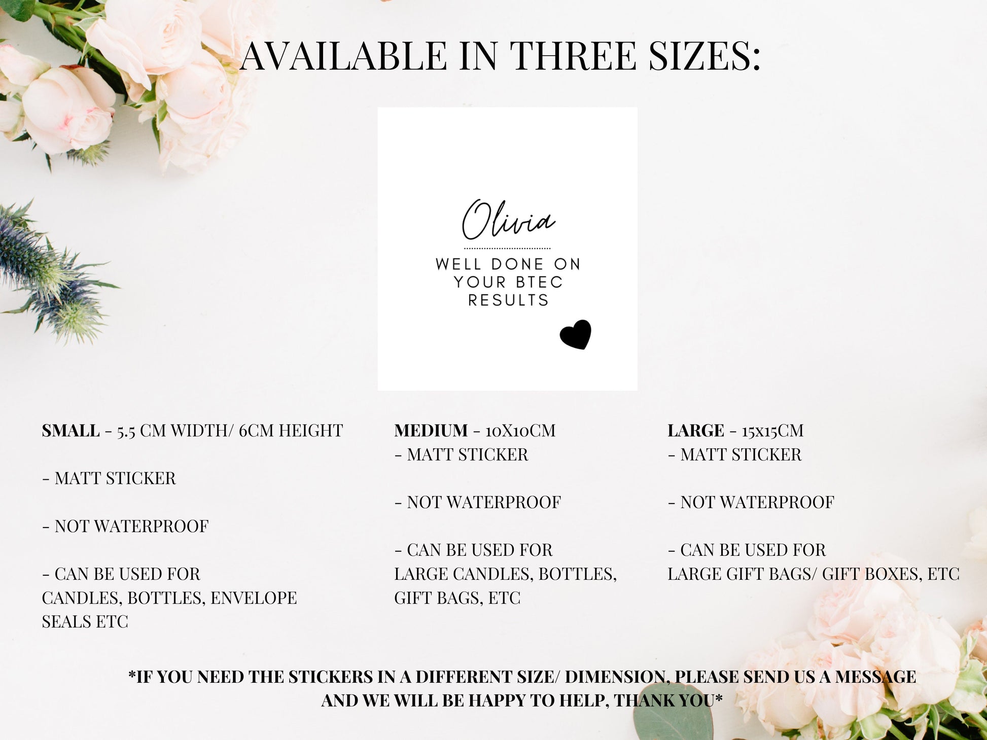 **If you need the sticker in a different size/ dimension, please send us a message and we will be happy to help, thank you**